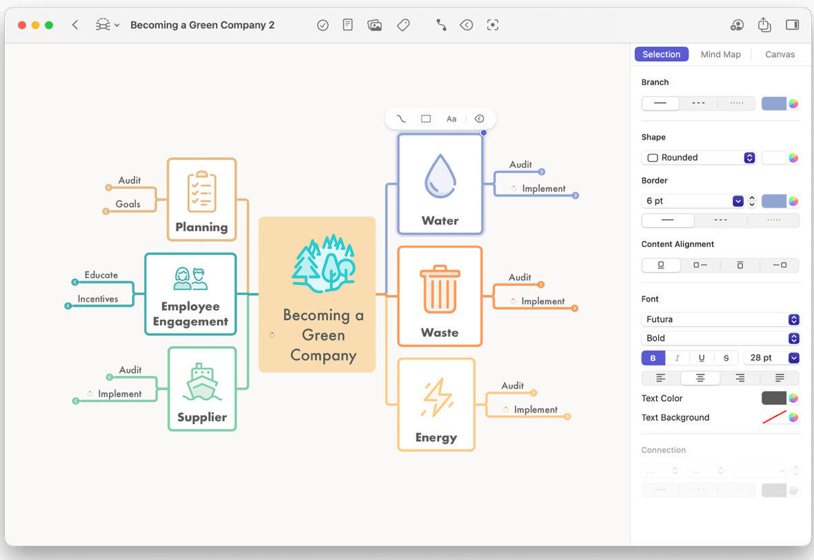 Before setting goals, collect everything in one place. Use MindNode Next to map ideas, habits you want to build, projects you want to start, and problems you want to fix. Seeing it all helps you decide what’s realistic.