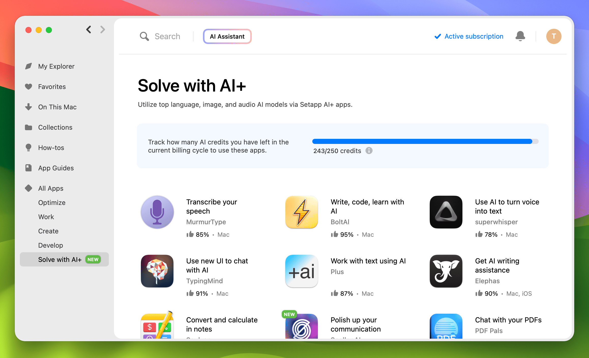 Go to the Solve with AI+ category in the Setapp app to try all the AI+ apps.