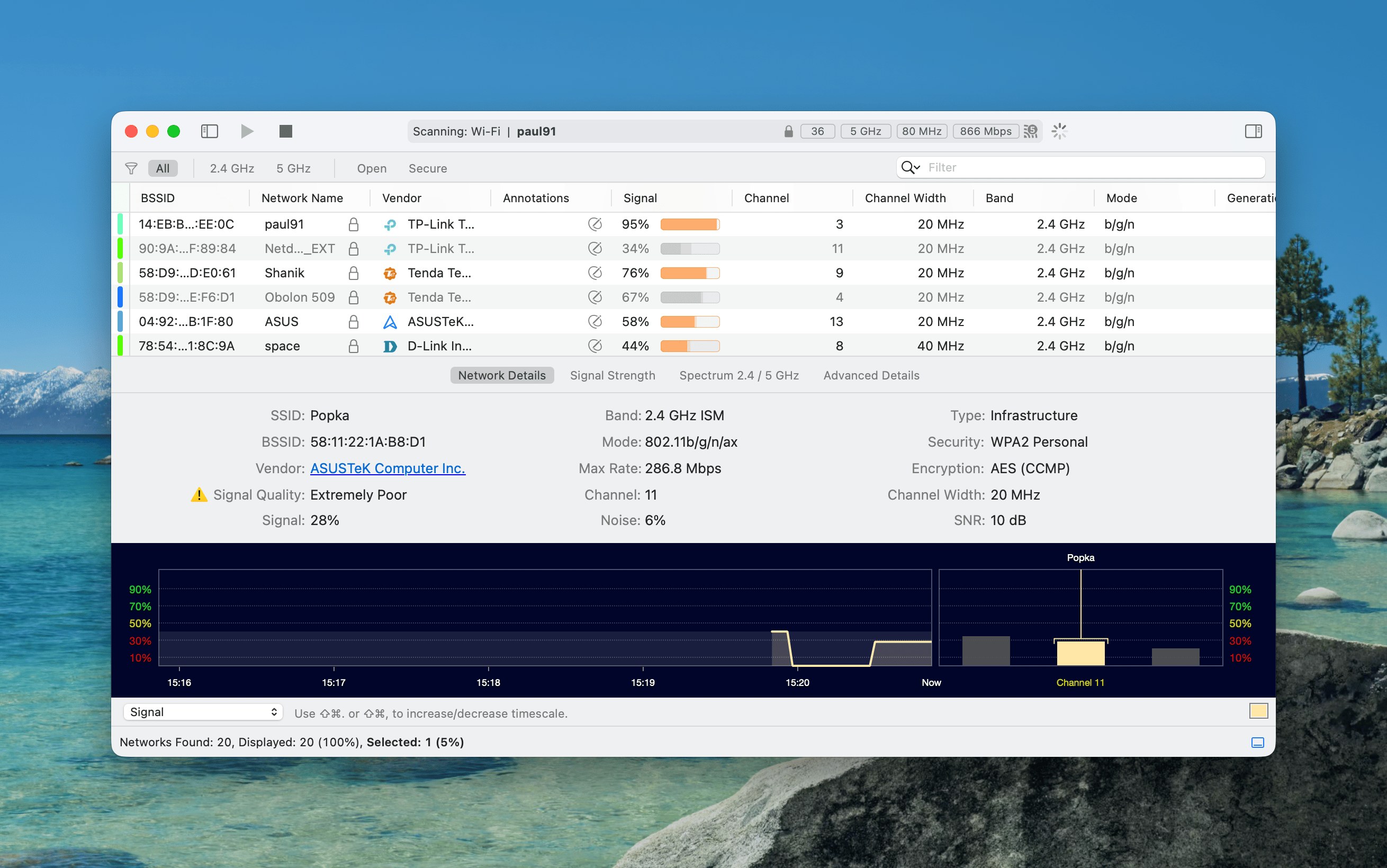 Large system updates need a stable connection; and not all Wi-Fi is created equal. Before you start the download, fire up WiFi Explorer to scan your network, spot weak spots, and switch to a better channel if needed.