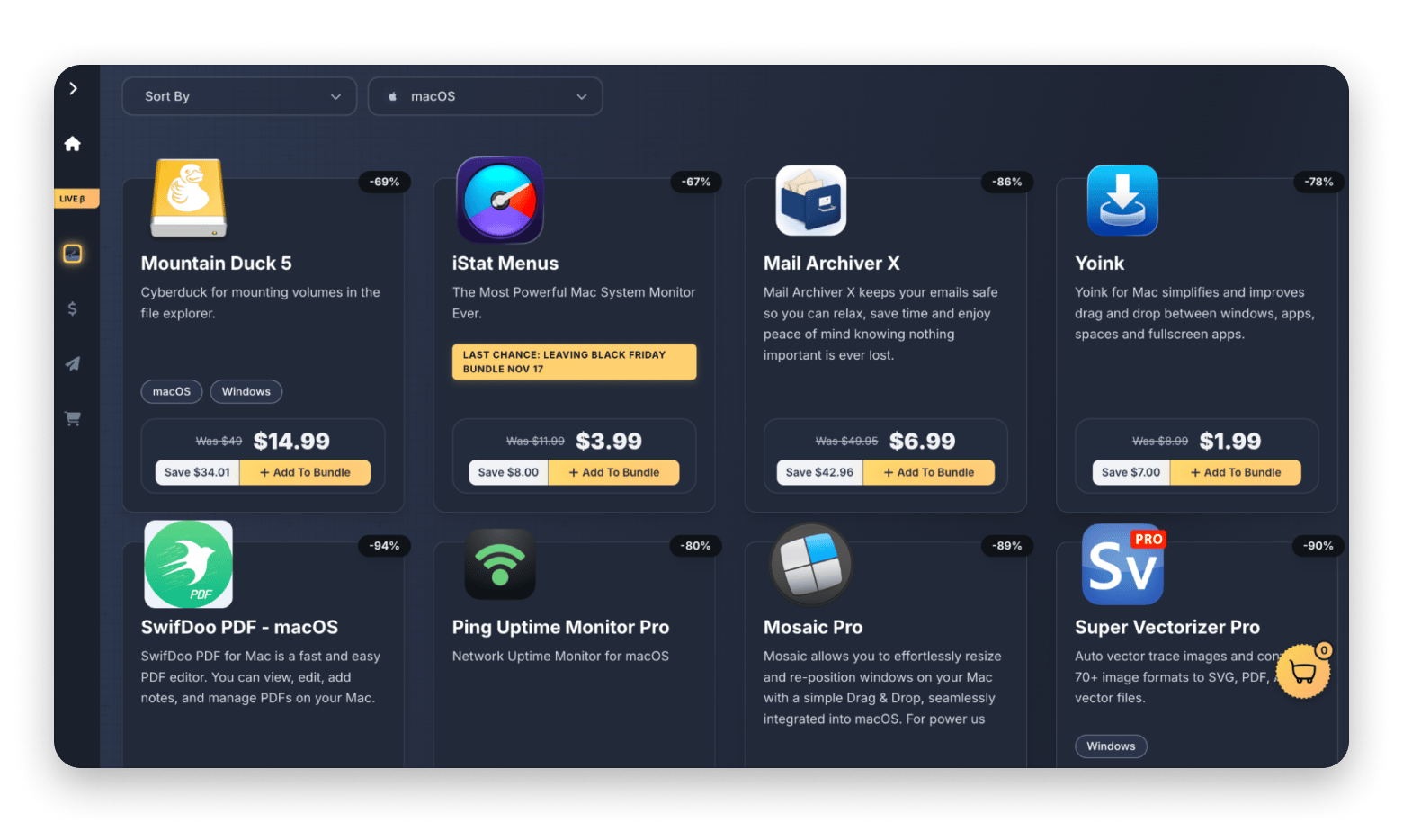 With thousands of duplicate apps and inconsistent reviews, the App Store makes it hard to identify which tools truly fit your needs. Setapp's curated collection removes the guesswork. - Bundle deals like StackSocial and BundleHunt work for specific needs.