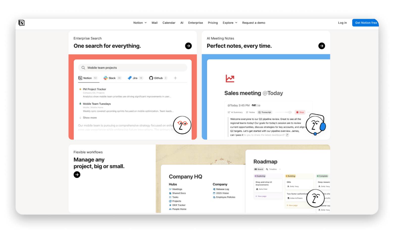 $100 per year/person | A customizable workspace for notes, tasks, databases, and team projects | Knowledge workers, teams, startups, and heavy planners | |