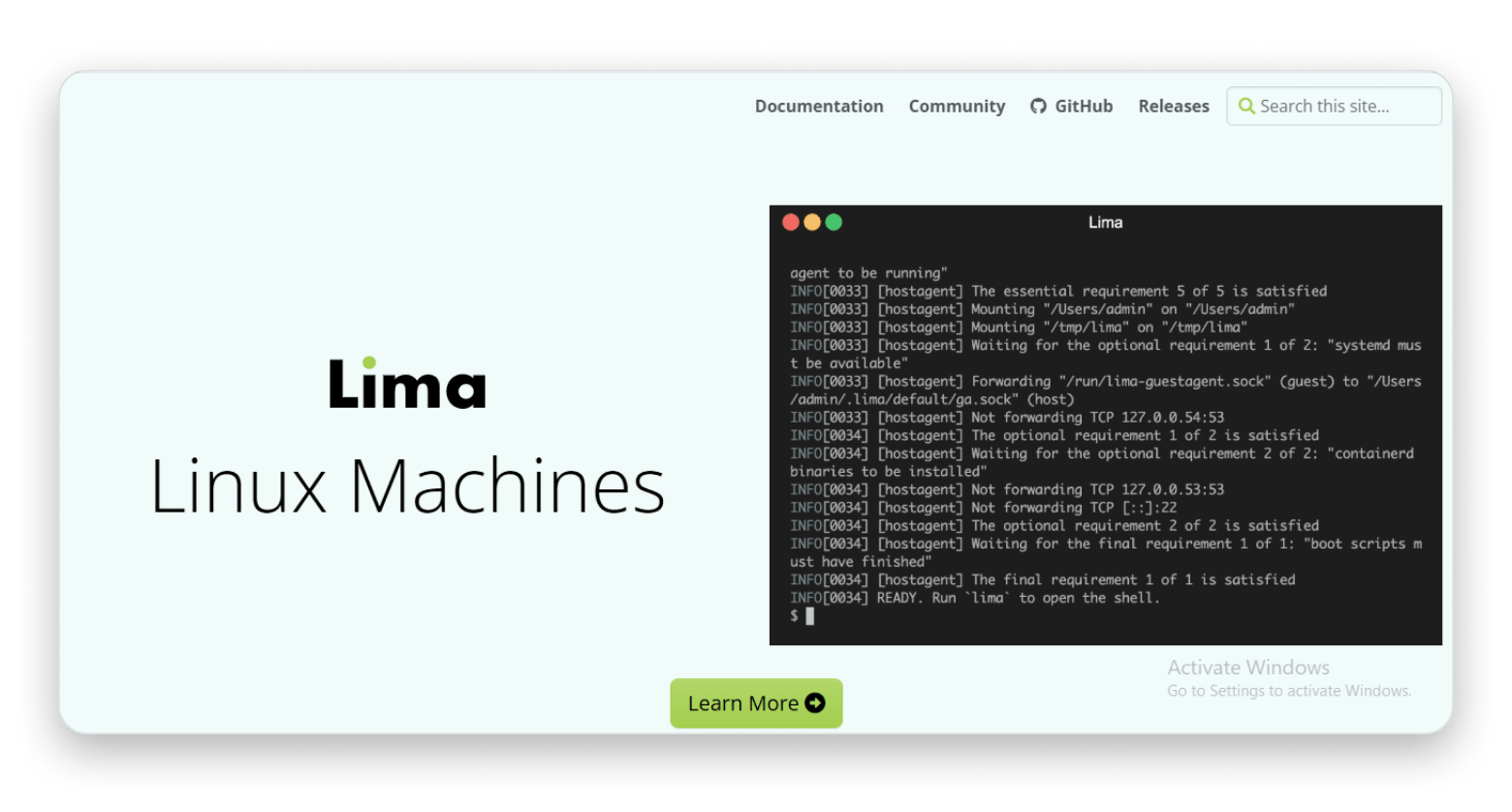 - Look no further than Lima if you're a power user who loves to customize every aspect of your environment and wants to build a custom Linux VM setup for your containers.