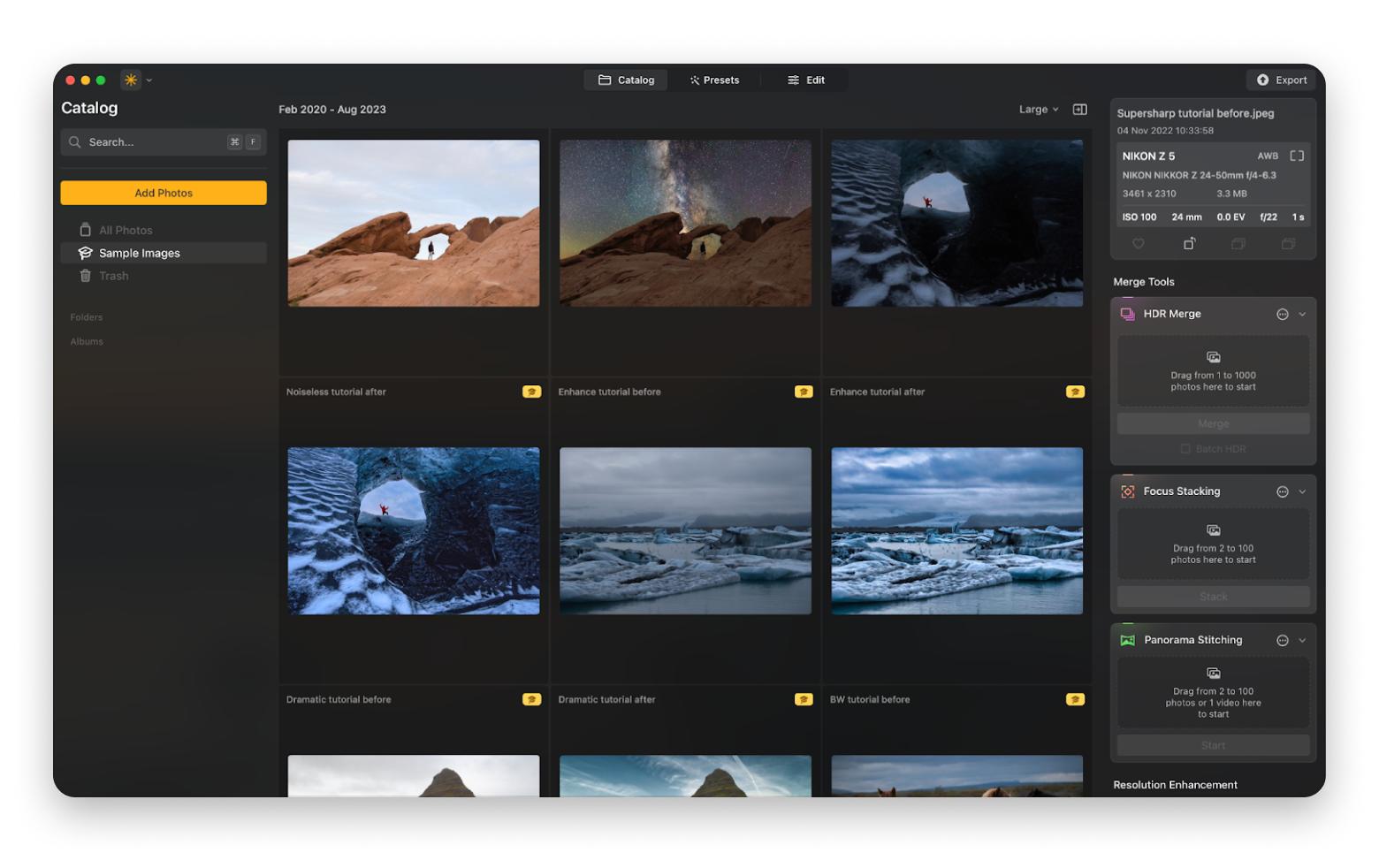 - Category-optimized enhancers addressing wildlife, travel, landscape, and more.
