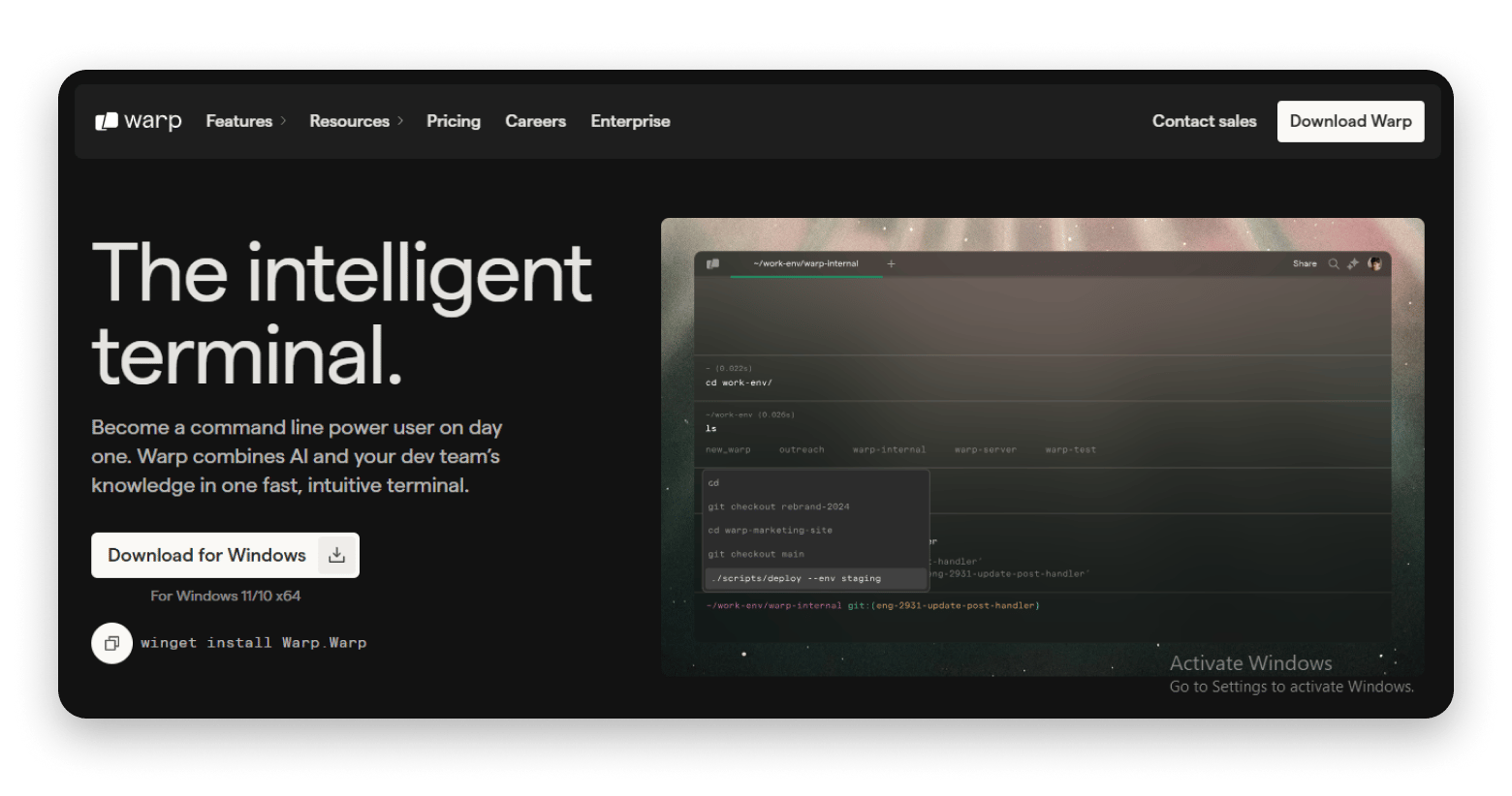 Warp is made with developers in mind. It comes with AI command help, shared sessions, and team spaces, all designed to make terminal work smoother. It’s built to boost your productivity and make DevOps tasks feel a lot easier.