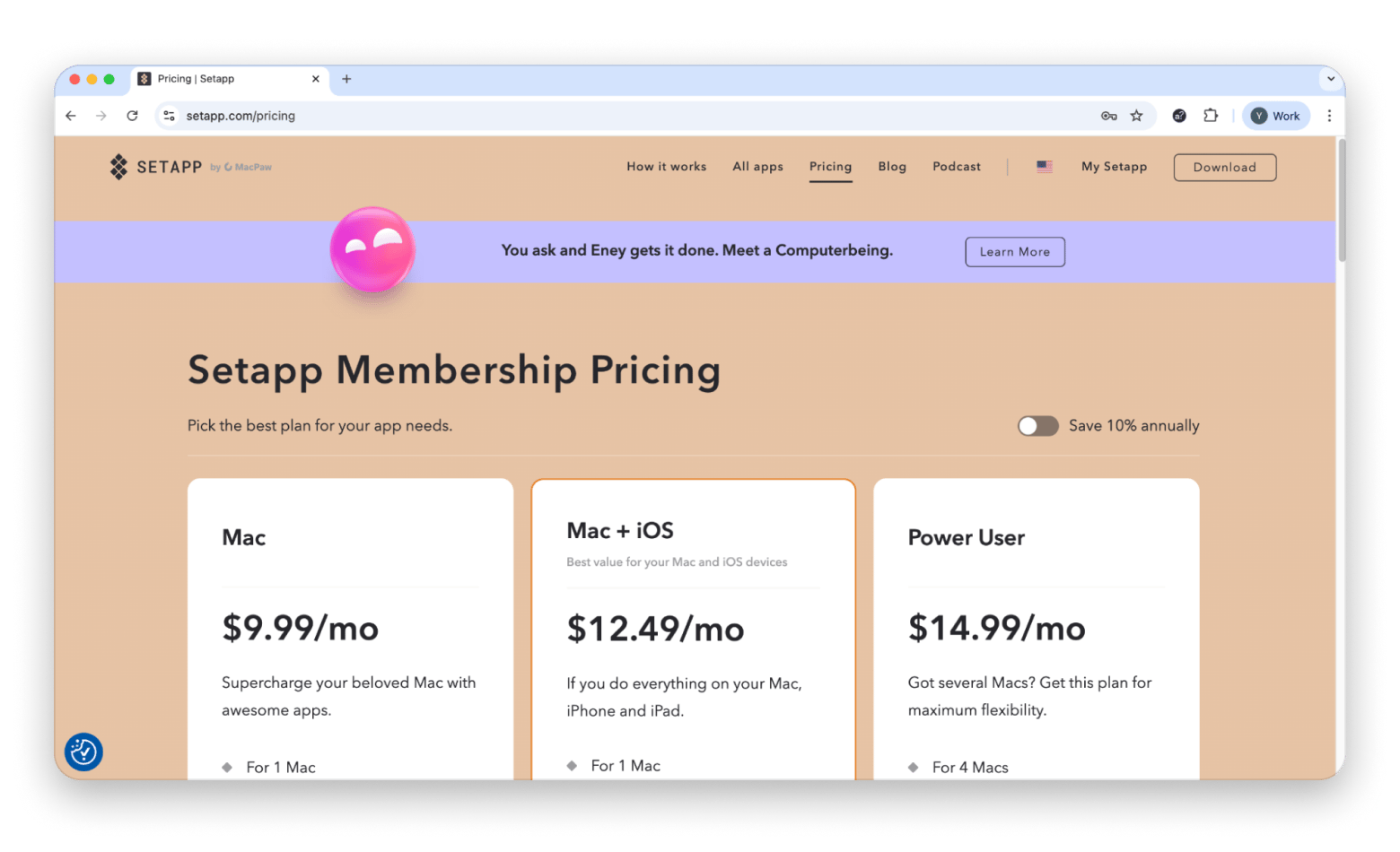 Who says Setapp is only for Mac? You can install apps across devices, both macOS and iOS, and even use web versions. The pricing differs based on how many devices you want it to cover, but it is a great deal when you consider all the apps you get in one single package.