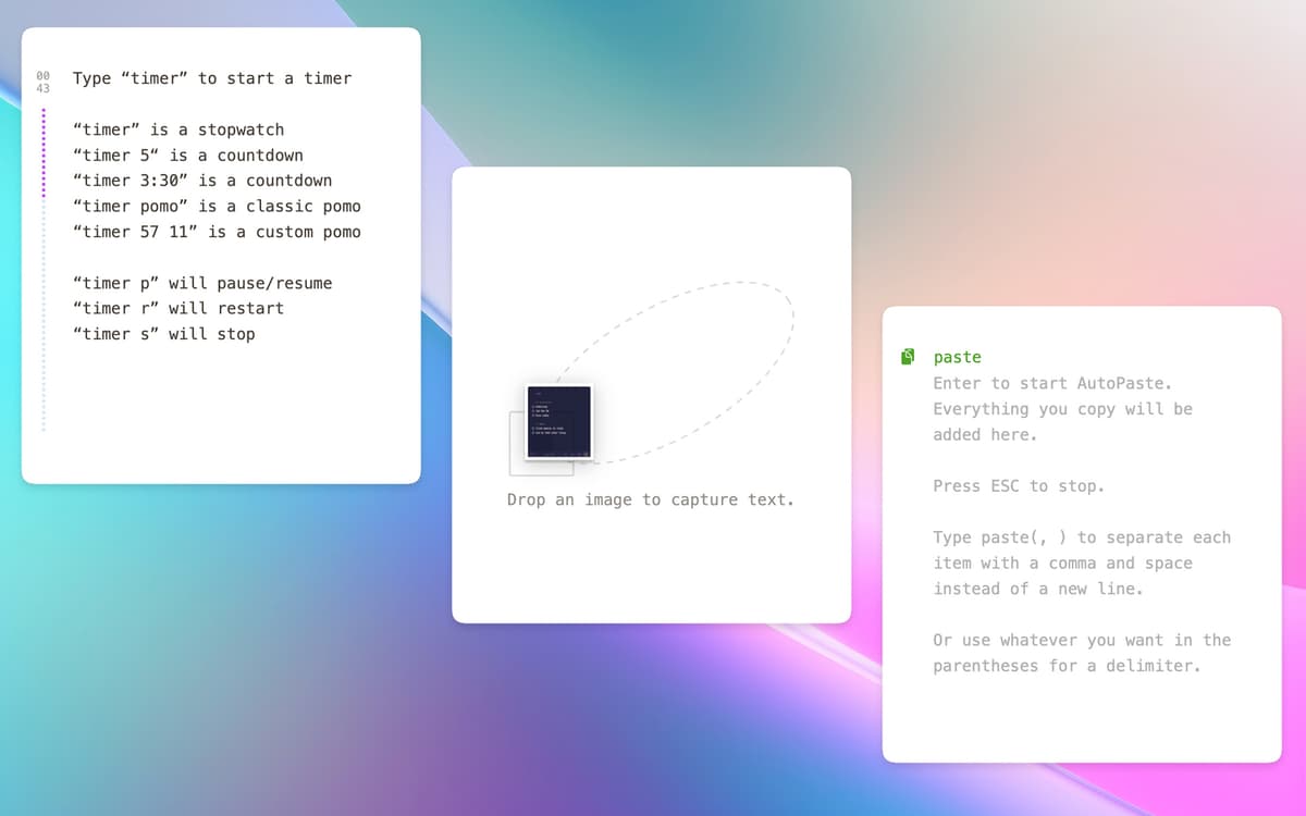 Antinote is the perfect blend of temporary notes, quick calculations, and light text manipulation. Need to capture a quick note while listening to a webinar? No problem. Want to set a Pomodoro timer? Done. Need a quick currency conversion? Antinote handles it all.