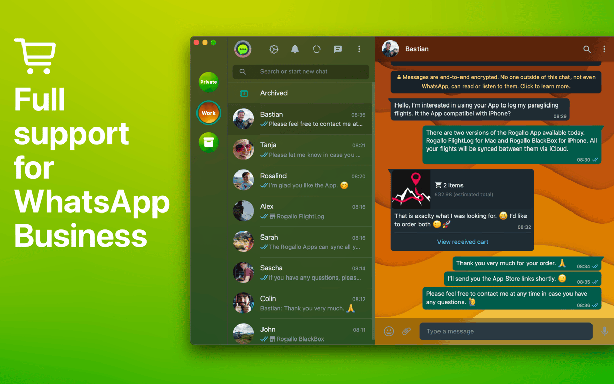 Chatmate for WhatsApp is the ultimate desktop app to seamlessly sync all of your chats to your Mac. It allows you to quickly send and receive WhatsApp messages right from your computer. The app comes packed with a set of cutting-edge features, not to mention Touch ID and Touch Bar support. Dark mode support not only looks brilliant but also comes in handy in a dimmed down environment being easy on your eyes. System wide sharing extension will help you easily share any of your supported files. Plus, it’s elegant, consistent and fun to use.