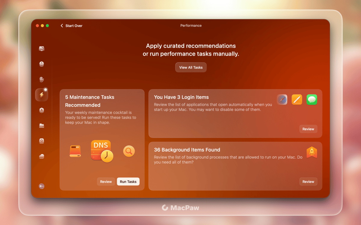 Si votre Mac tourne au ralenti récemment, vous pouvez rétablir sa vitesse avec des outils d'optimisation et de maintenance dans CleanMyMac X. Le système et le disque dur s'encombrent de toutes sortes de déchets, c'est naturel pour Mac. C'est pourquoi vous devez utiliser tous les scripts et optimisations disponibles pour redonner à votre Mac sa vitesse d'antan.