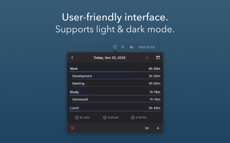 Daily helps you track time in more than one language! To make you feel more at home, the app is available in English, Dutch, French, German, and Spanish.