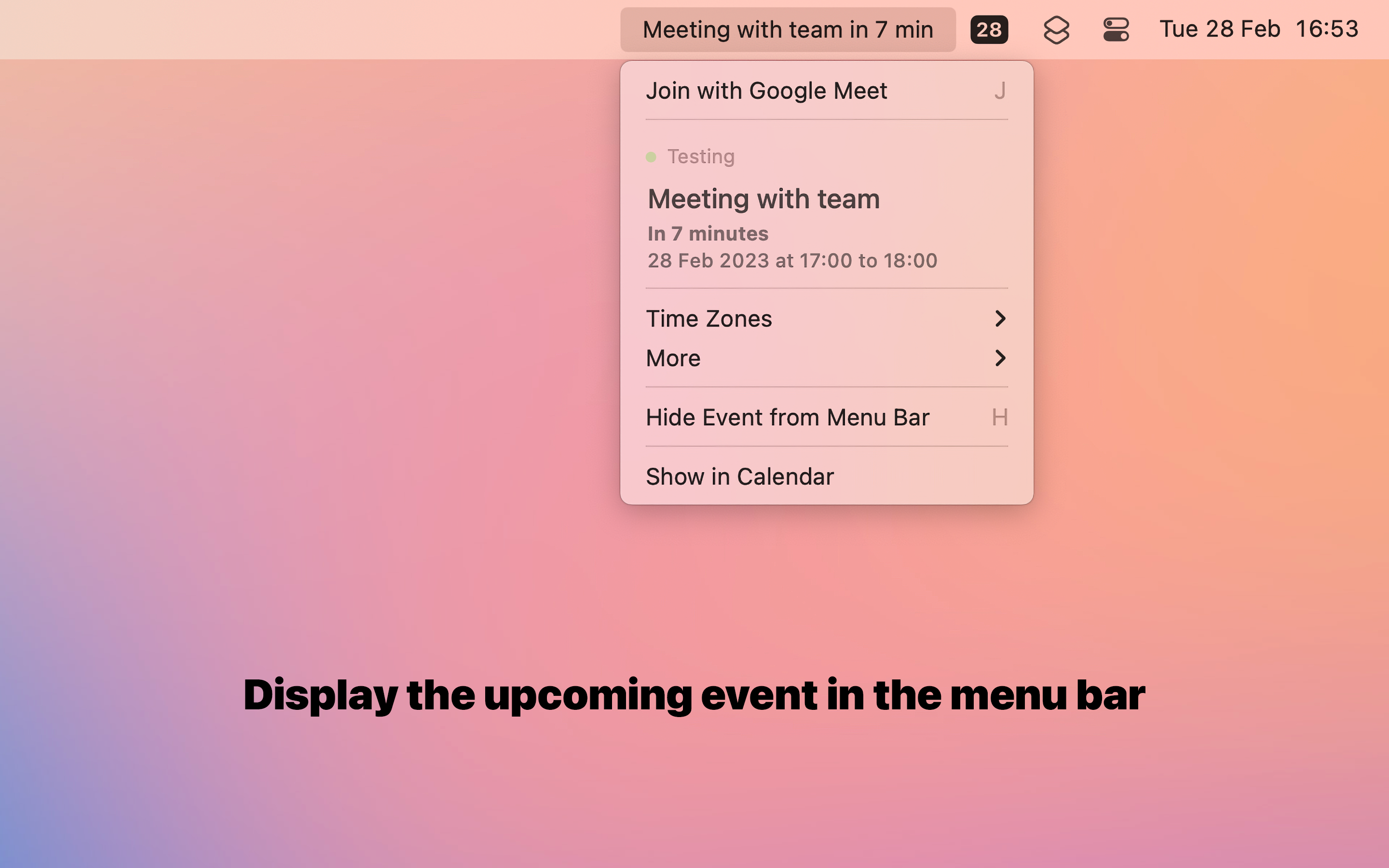 Sync your calendars into Dato’s customizable menu bar preview calendar. The app allows you to add events to your calendars, join meetings and preview your schedule — all from a convenient drop-down menu bar utility.