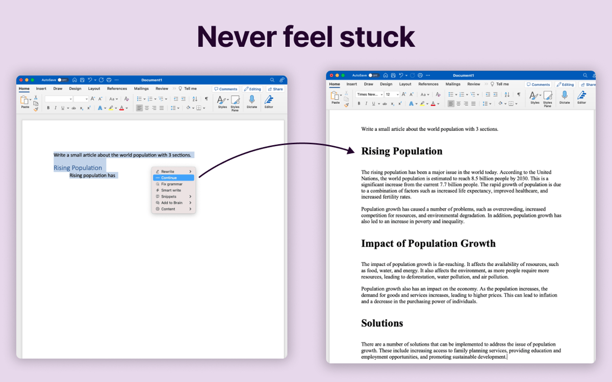 Create reusable snippets for frequently used prompts and build custom workflows to automate repetitive tasks. Chain actions together, apply your own writing tones, and transform hours of manual work into seconds of automation.