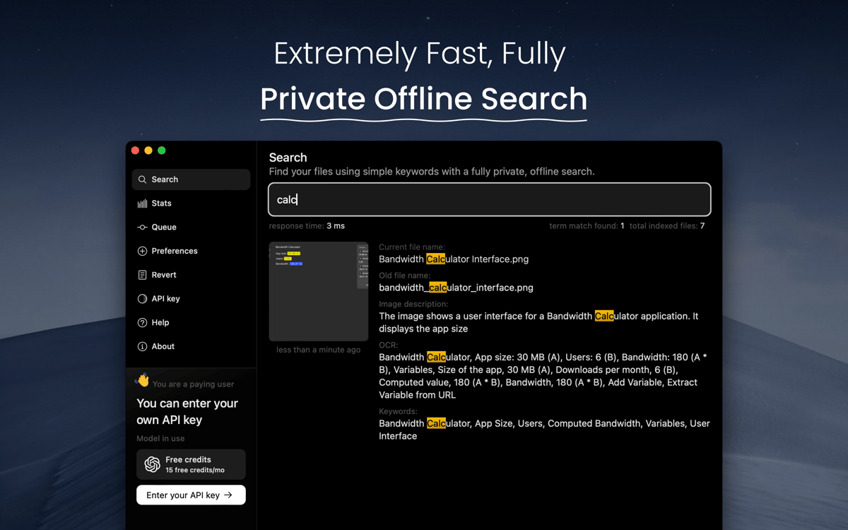 What’s the point of renaming your screenshots to reflect their content unless you can search them? Use Keep It Shot’s built-in private offline search to look for specific items in your library.