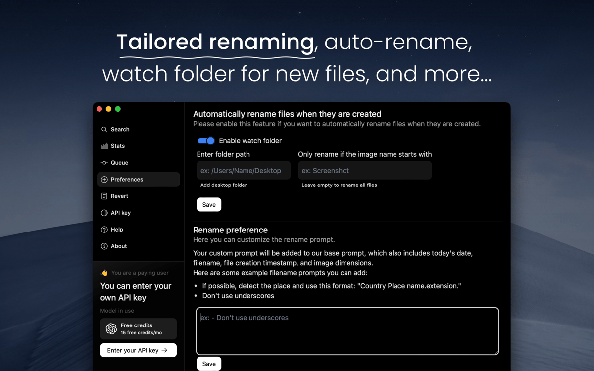 If you want all your screenshots neatly named according to their content as soon as they are created, set Keep It Shot to automatically rename your files. Customize the rename prompt for more precise results.