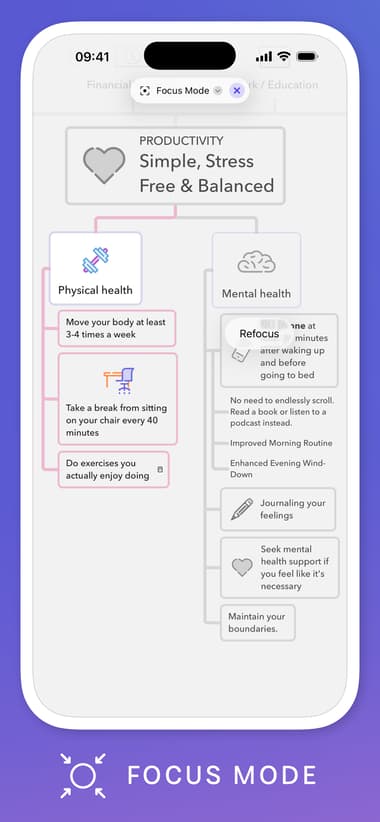 MindNode isn’t just for brainstorming. It shines when it comes to turning ideas into actionable tasks. If you’re planning a business launch, you can branch out from marketing strategies to product features and turn each into a task with checkboxes. Not a business person? Create a grocery list or plan your next workout session.