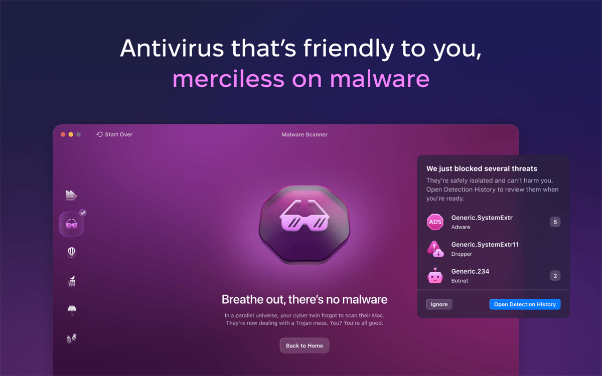 When Moonlock finds malware, you’ll see what type it is, how it’s dangerous, and what to do next. Track all removed malware to see if there’s a pattern and use this knowledge to avoid risky files in the future.