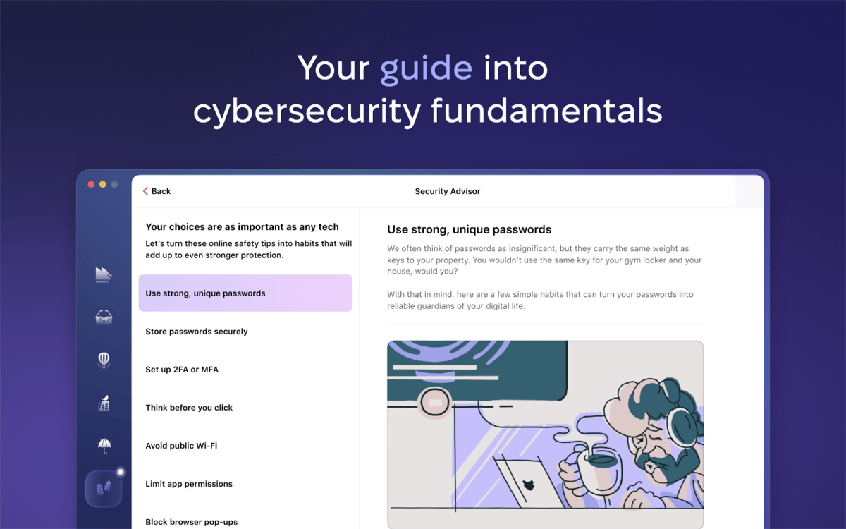 Moonlock comes with a collection of simple habits that anyone can adopt to stay safer online. When you follow them through, like choosing stronger passwords or checking links before clicking, you’re doing something no app can do for you: creating the most personalized online protection there is.