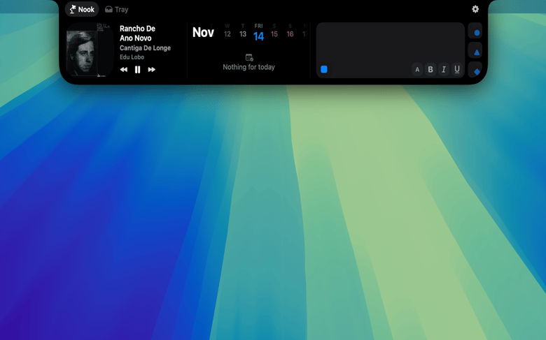 Keep track of your schedule without opening a full-screen calendar app. NotchNook displays your calendar events right in the notch and supports live activities, so you’re always in the know.