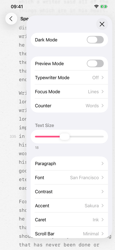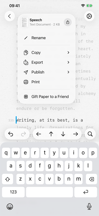 Finding it hard to stay focused on your writing goals? The built-in counter in the Paper app tracks your characters, words, and reading time. It helps you monitor your progress and stay productive during your writing sessions.