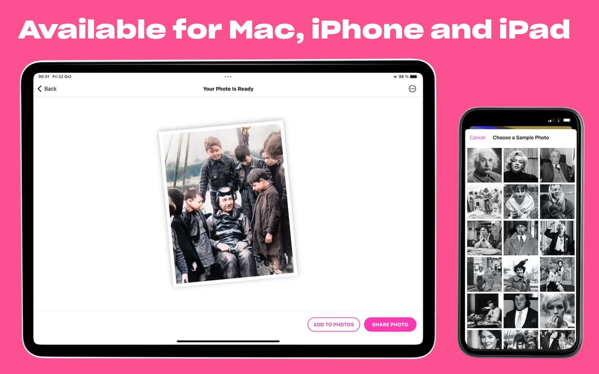 PhotosRevive is available both on your Mac and iOS devices (iPhone or iPad). This way, you can colorize your black-and-white images even when you aren’t in front of your Mac. No fancy equipment, only fancy AI!