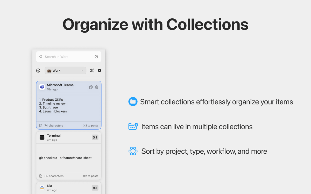 macOS can only hold one copied item at a time, which creates a constant bottleneck for power users. Quip captures everything you copy and syncs across devices — whether it’s code, images, or links — and stores it in a persistent, searchable database. Even if you copied it days ago, you can find and reuse it instantly.