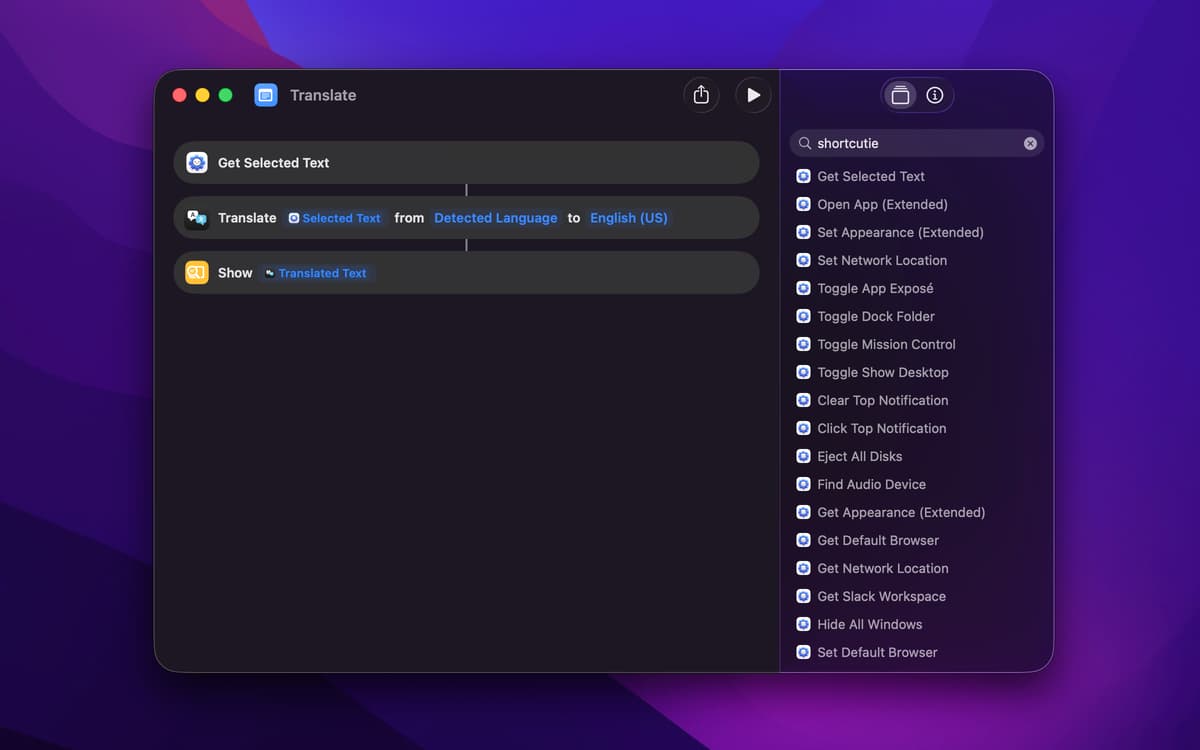 Ever tried to automate something on your Mac and hit a wall because Shortcuts just... can’t do it? Shortcutie adds 70+ actions that let you do things with one click or keyboard shortcut that normally take multiple steps: grab selected text and send it somewhere, trigger buried menu items, switch System Settings, and automate workflows based on context like Wi-Fi network, time of day, and more.