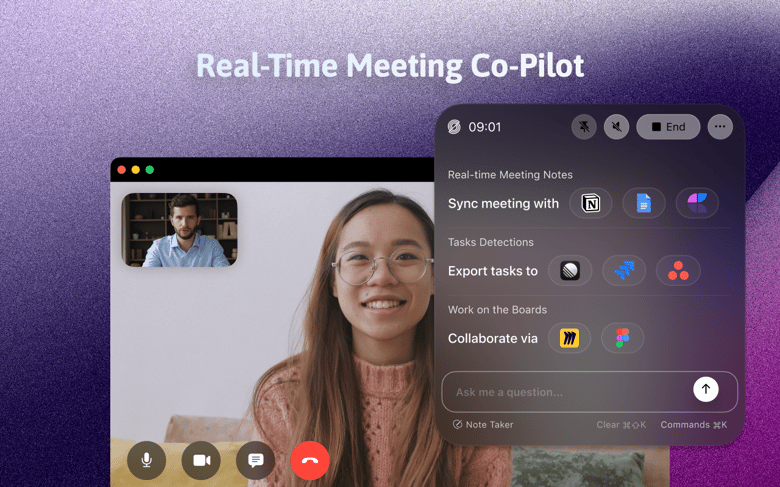 Your personal meeting co-pilot is always ready to help. From brainstorming support to quick recap requests and even contextual ice-breakers, this customizable AI assistant enhances your meeting experience in real time.