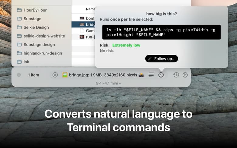 Substage takes your natural language requests and turns them into accurate Terminal commands, saving you time and effort in managing files and system operations.