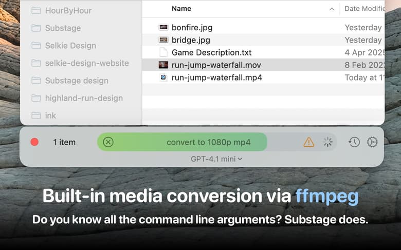 Substage makes managing your Mac effortless by letting you use natural language. It simplifies your workflow by converting your instructions into powerful Terminal commands. No more dealing with complicated syntax! Whether you’re converting files, editing images, or working with documents, Substage makes it easy and quick.