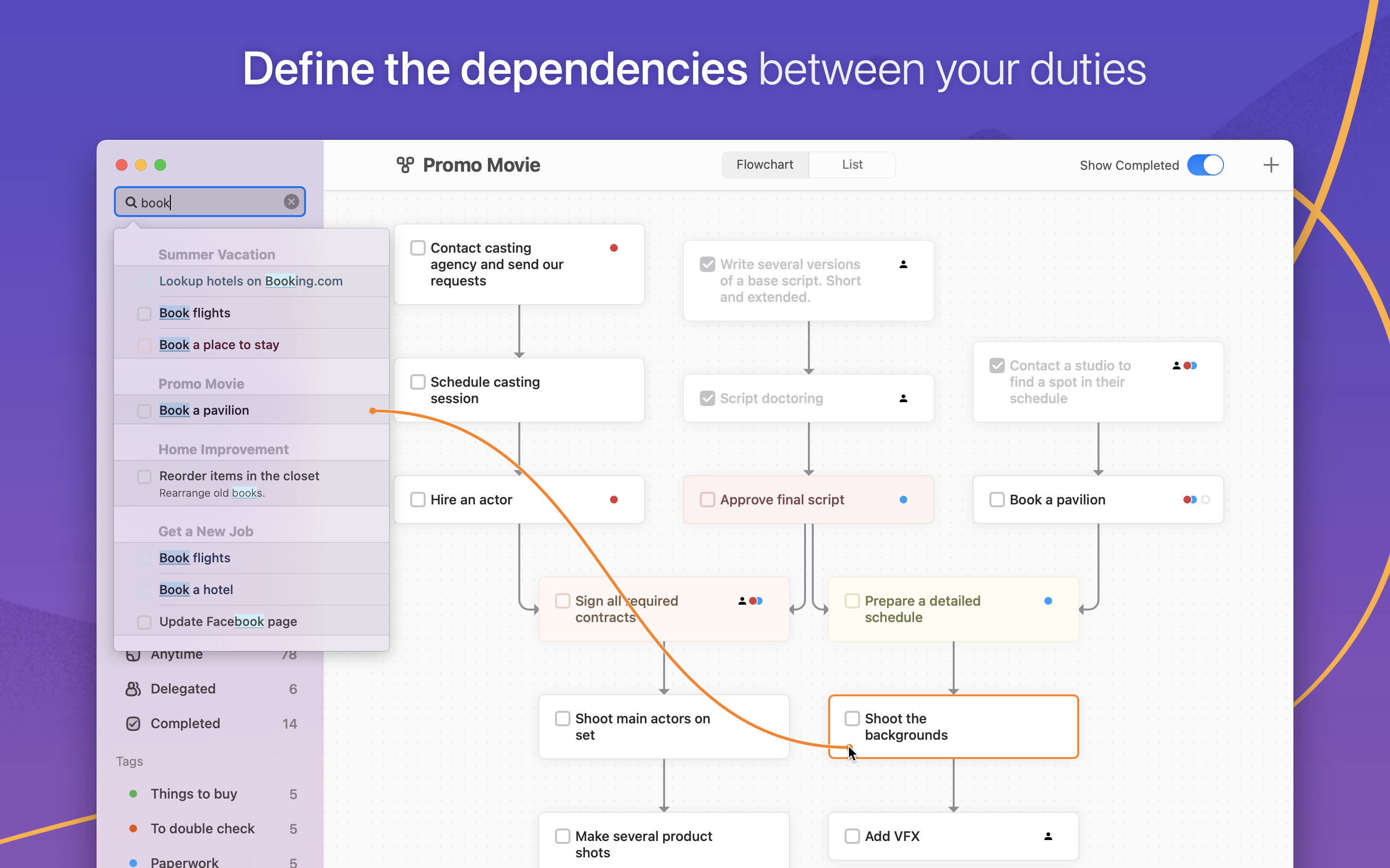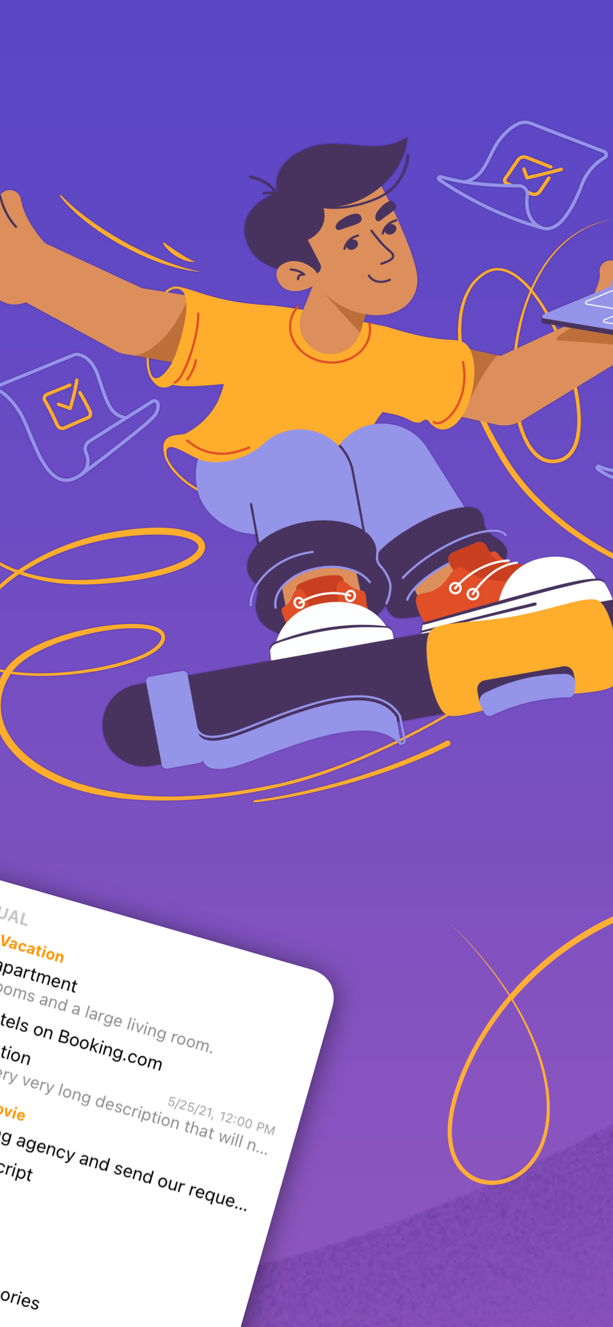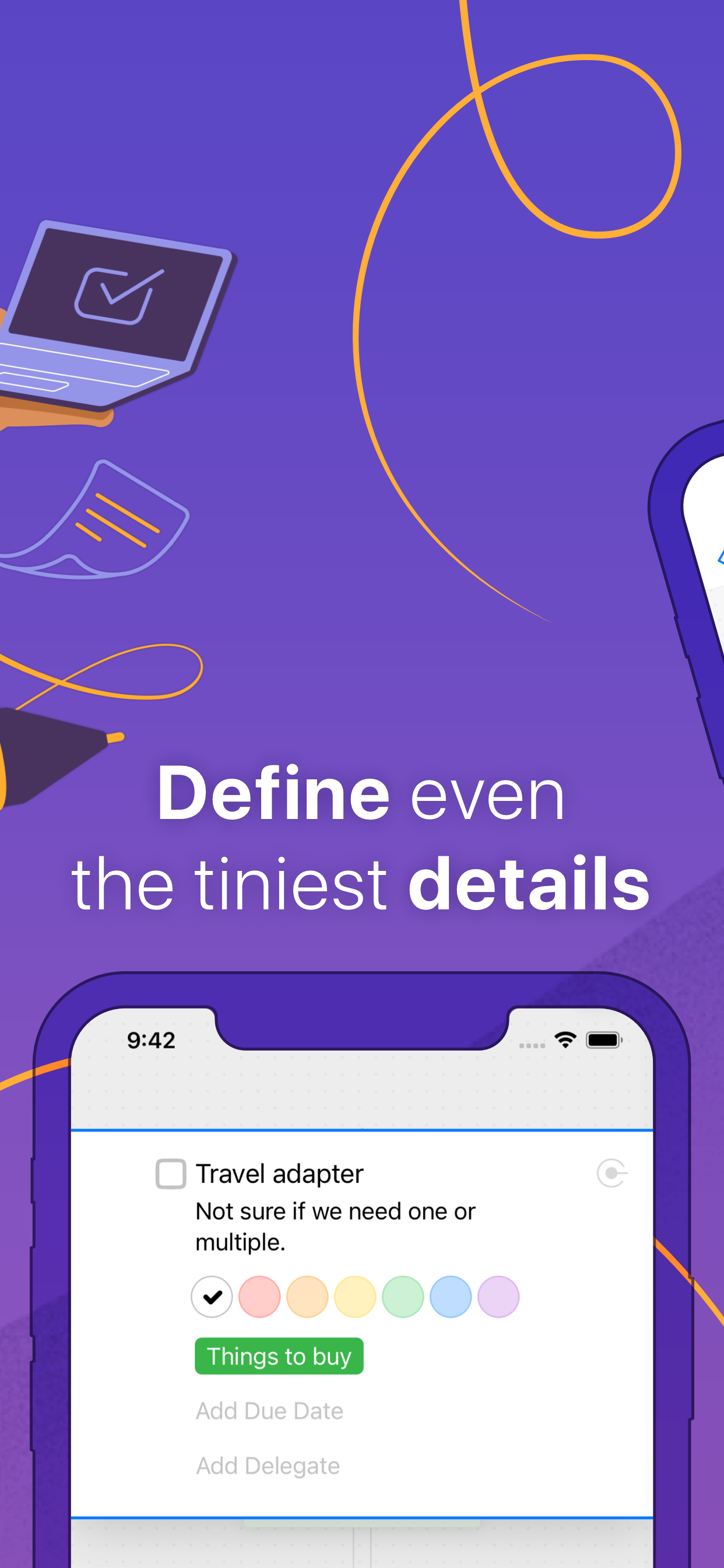 A bit of color not only brightens your day, but also keeps your list of tasks organized. Assign color-coded tags to your to-dos for better navigation. Whenever you need to instantly find an item, you can simply filter it by tag. Deadlines won’t have to wait.