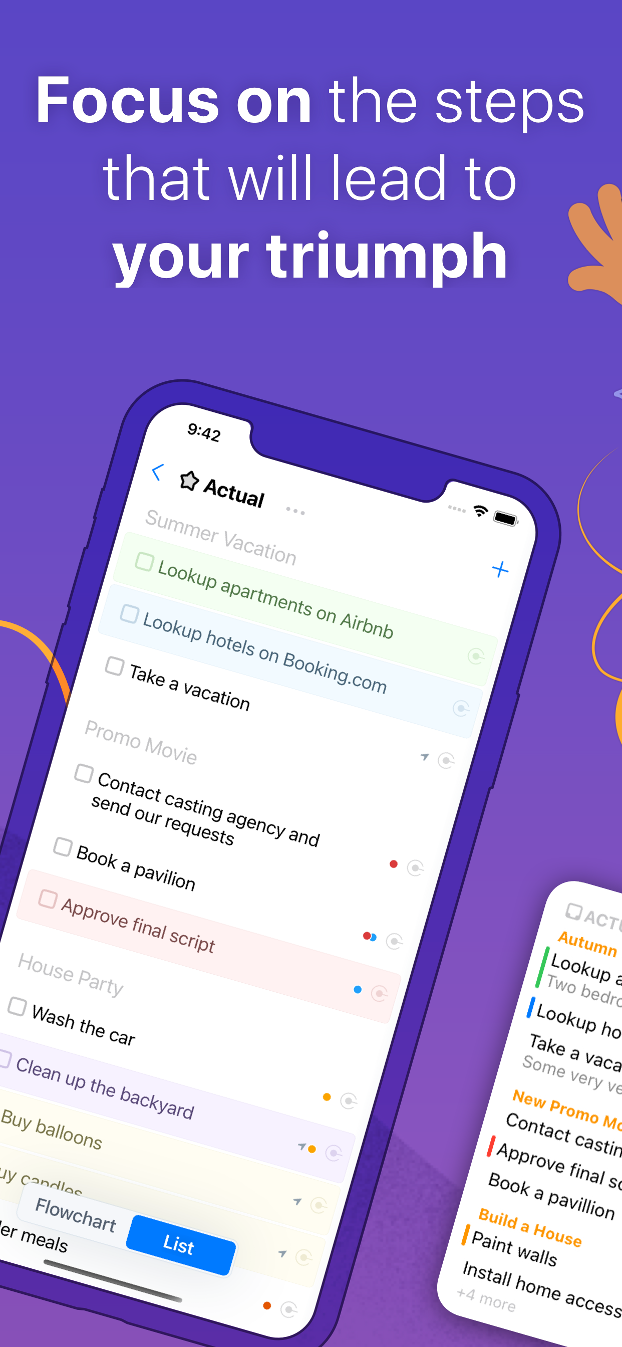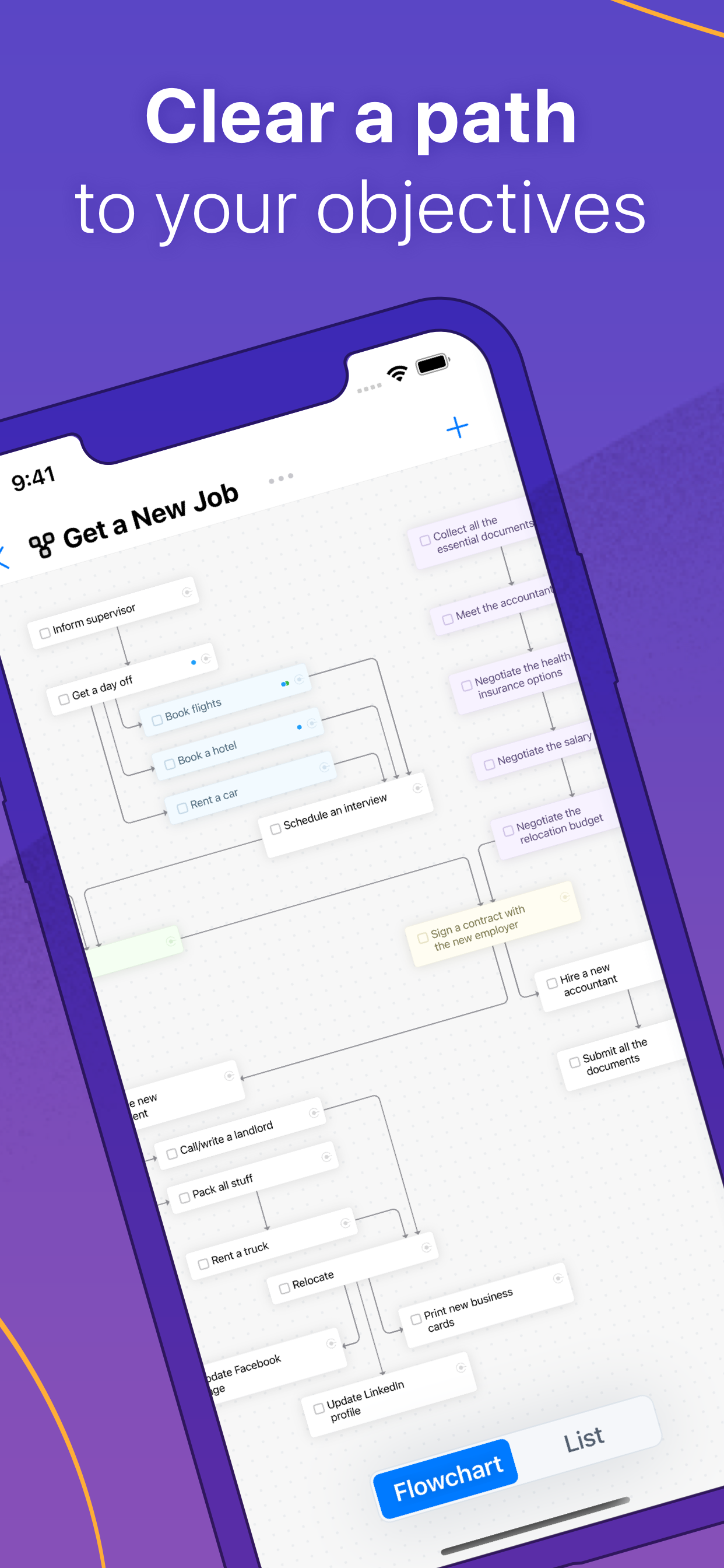 Staying focused when you’re drowning in to-dos is only possible if you know how to prioritize. Taskheat teaches you the right way to approach your tasks, using a visual flow structure. Identify what has to be done. Link tasks together in Flowchart or List views. Focus on what’s important.