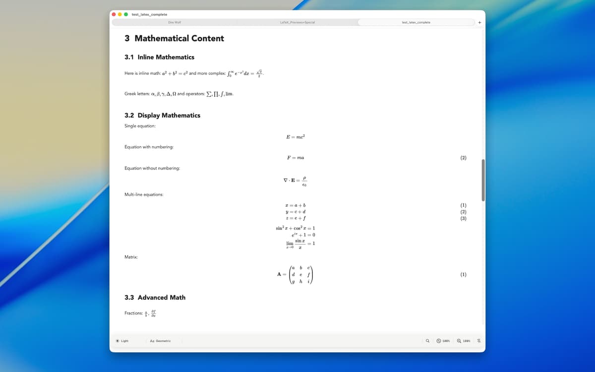 Open Markdown, Mermaid, LaTeX, SVG, ePub, PDF, plain text, code files (Swift, Python, JavaScript, Java, C/C++, Go, Rust, HTML/CSS, YAML, and 40+ others), JSON, XML, CSV, and more — all in one app. Every format is rendered cleanly, so you don’t need separate apps for different file types.