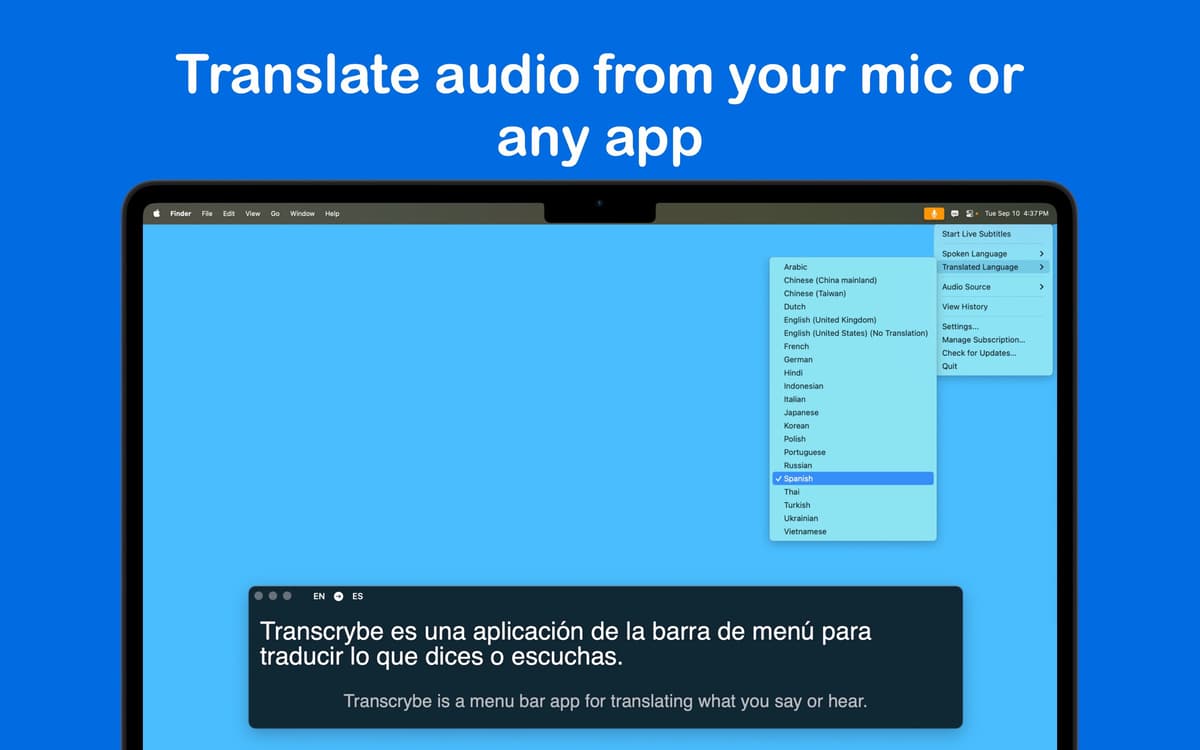 If you’re speaking to an international group, Transcrybe bridges the gap. It overlays live subtitles directly onto your presentation, letting non-native speakers follow along in their own language. The app currently supports over 20 languages, with more to come.
