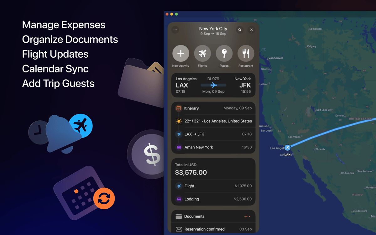 With the Tripsy trip planner, you’ll always stay on top of your plans. Timezones adjust automatically, and the app sends flight alerts with status updates, terminal information, baggage claim details, and more. You’ll also get weather forecast notifications to help you keep your plans up to date. With these automations, things run more smoothly — you can anticipate layovers, adjust stopovers, and organize your schedule with ease.