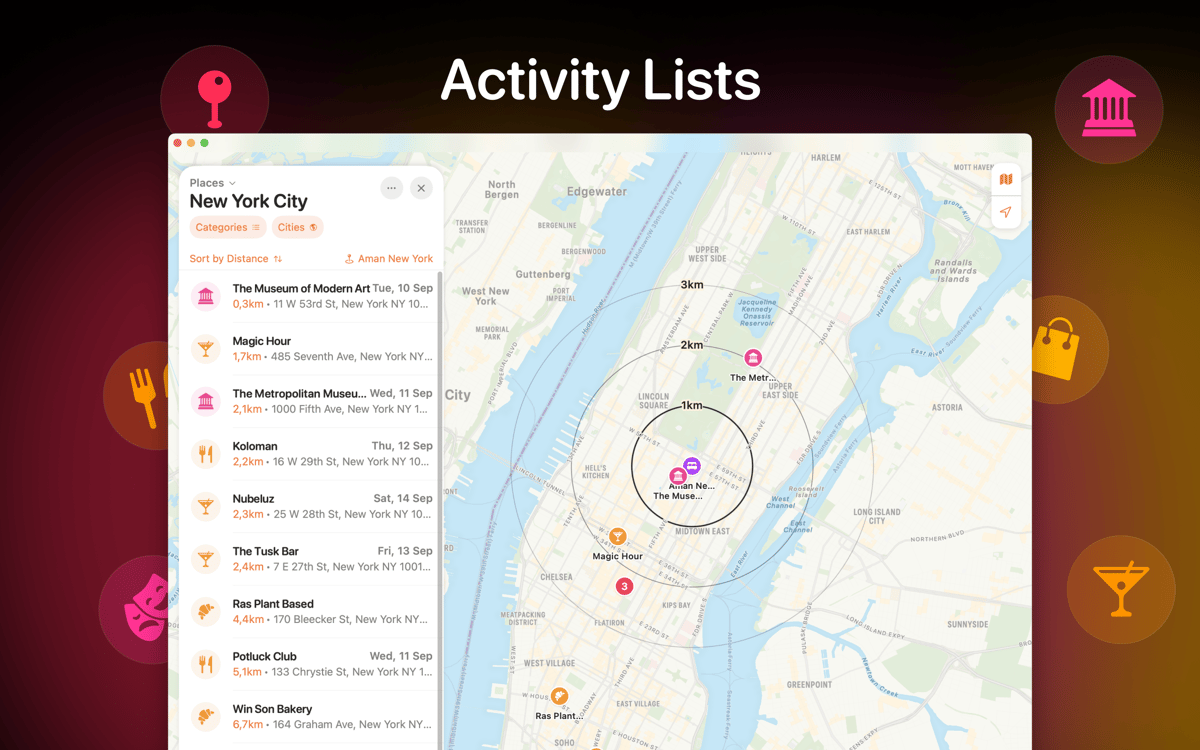 The app doesn’t limit you to preset categories — you can add your own, like Activities to Try or Foods to Taste, and include them in your plan. You can also set your preferred currency, distance unit, language, and more. Need more? Give each trip its own style with a custom background color, or upload an image to use as the background.