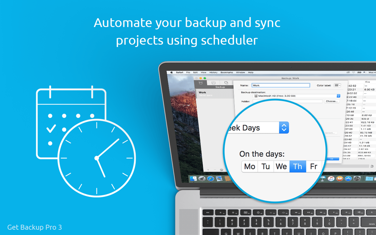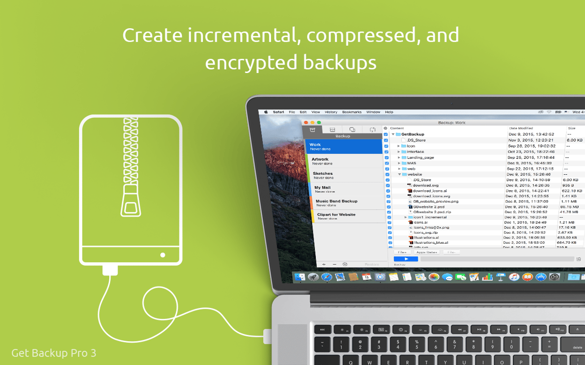 Auf deinem Computer sind sehr viele Daten gespeichert, oder? Wie wäre es mit einem zuverlässigen Backup-Dienstprogramm für den Mac, um der Katastrophe eines Datenverlust entgegenzutreten? Versuche Get Backup Pro. Es ist eine gute Mischung von Backup-Methoden mit vier unterschiedlichen Arten von Backups: einfache Kopie, Klon, inkrementelles und versioniertes Backup. Zudem wird es genutzt, wenn du einmal Daten wiederherstellen musst, die versehentlich gelöscht wurden. Ein weiterer Pluspunkt besteht darin, dass du die App nicht auf einen anderen Rechner installieren musst, wenn du die Daten auf ihn wiederherstellen möchtest.