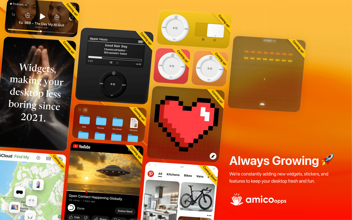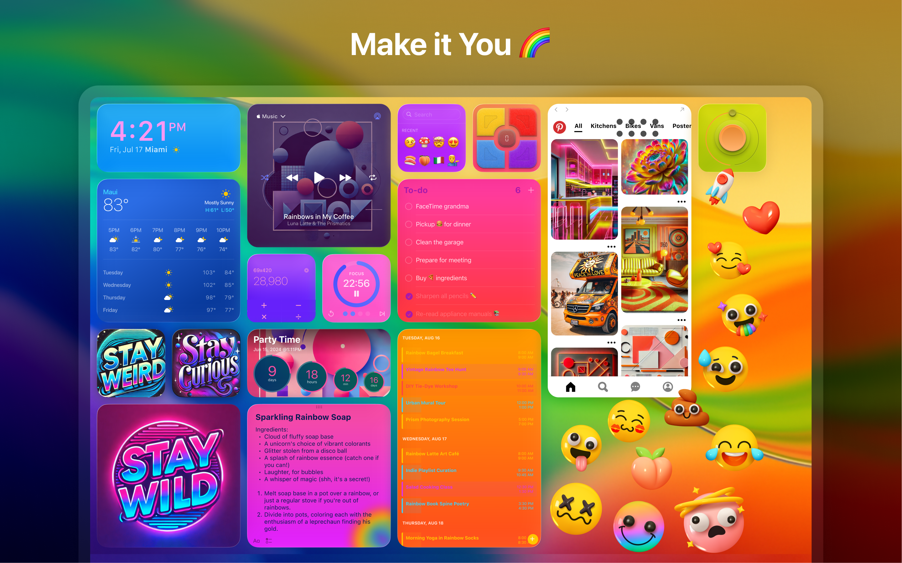 Individualisiere deinen Mac-Schreibtisch mit Widgets – füge deine Lieblings-Apps, Bilder, Mac-Statistiken und sogar Websites für den Schnellzugriff hinzu. Erstelle mit WidgetWall deine eigene Widget-Wand auf deinem Schreibtisch.