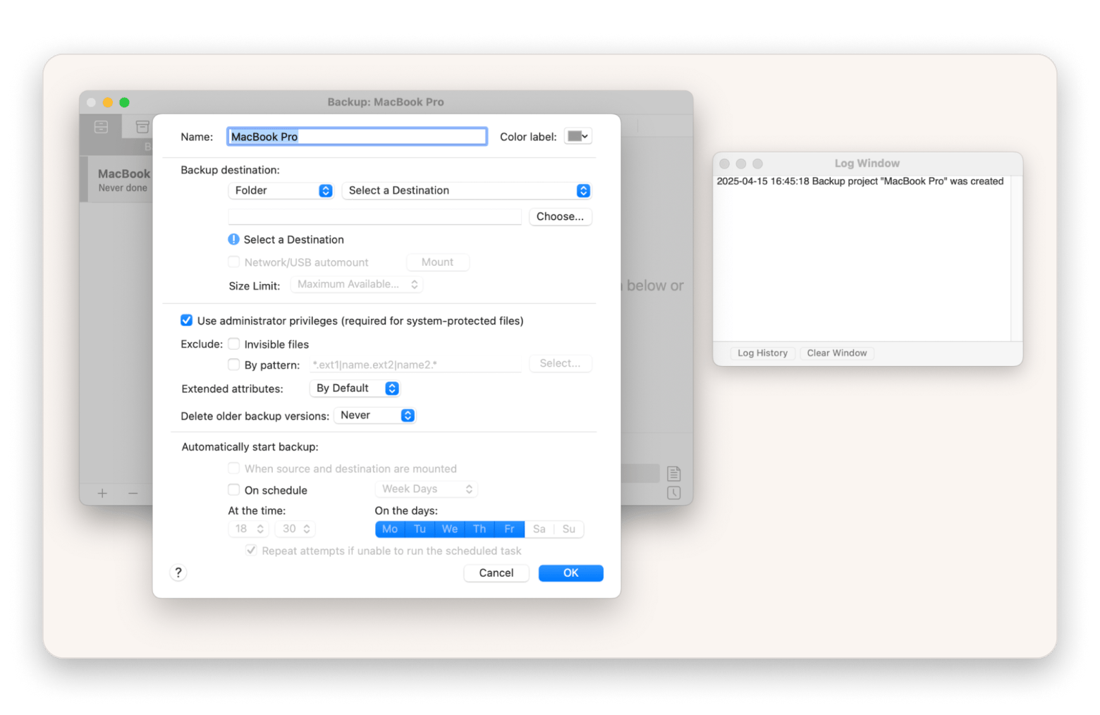 - Elige una unidad externa y configura una copia de seguridad automática.