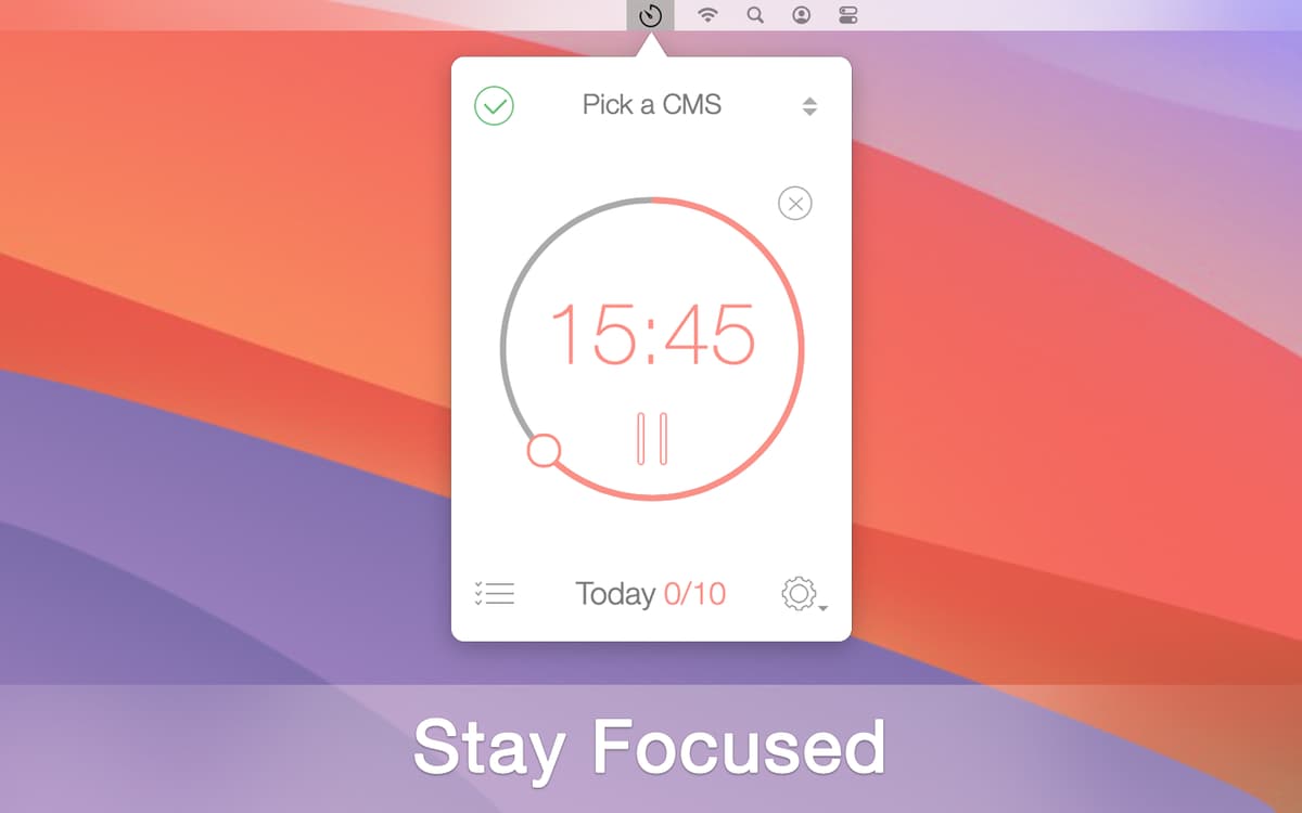 Réglez l'heure du travail, et concentrez-vous sur vos tâches sans perturbation. Déterminez le nombre de pauses entre les tâches et leur durée. Autre point appréciable : contrairement aux applications de liste génériques, cette application vous permet de démarrer, mettre en pause ou ignorer un intervalle de travail.