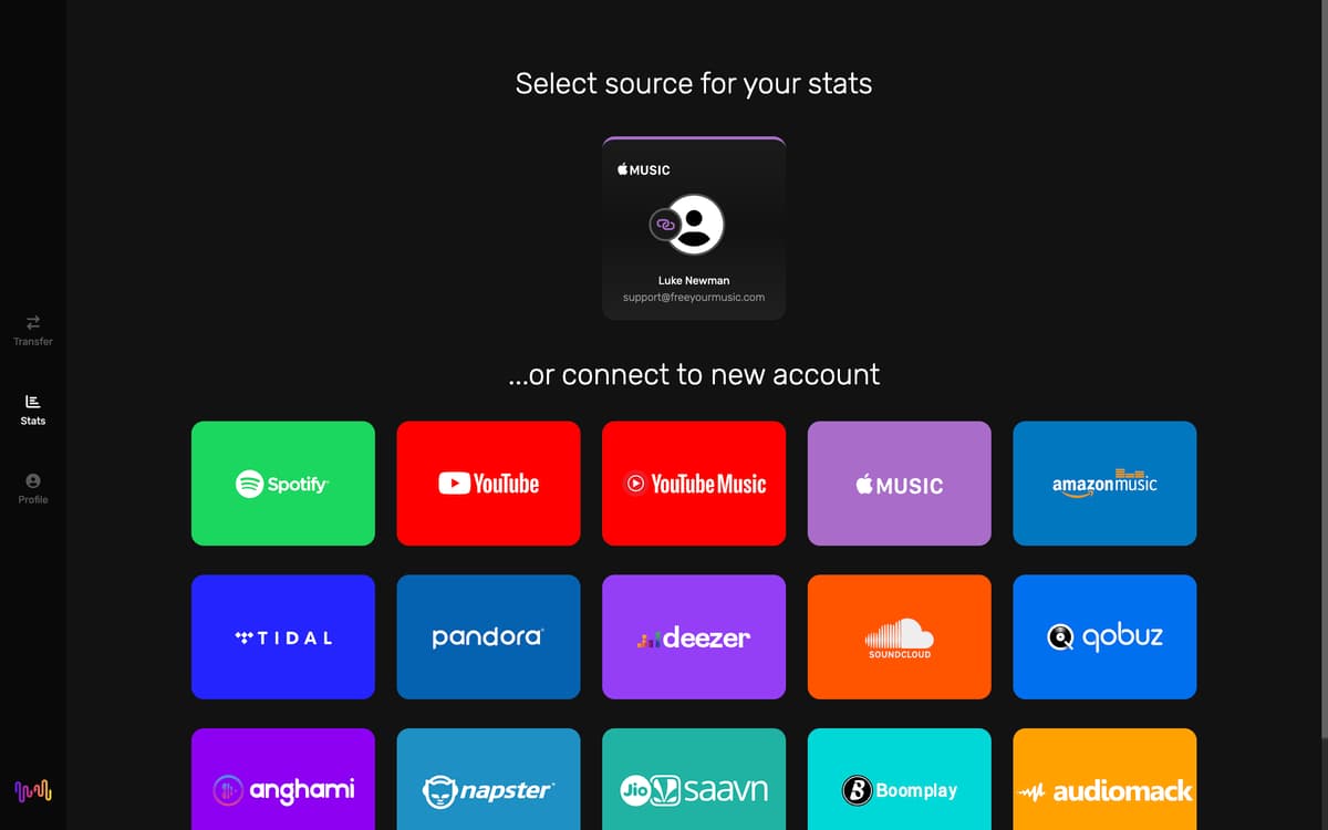Vous en avez assez de rester bloqué sur la même plate-forme musicale ? FreeYourMusic vous permet de transférer facilement vos playlists et votre bibliothèque musicale entre différents services de streaming. Indiquez votre plate-forme actuelle et celle que vous souhaitez utiliser, et laissez FreeYourMusic s'occuper du reste.