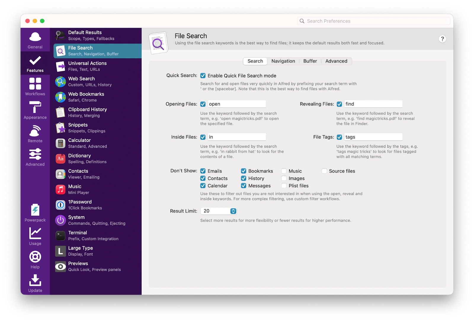 Note that most of the features require PowerPack, Alfred’s paid plan.