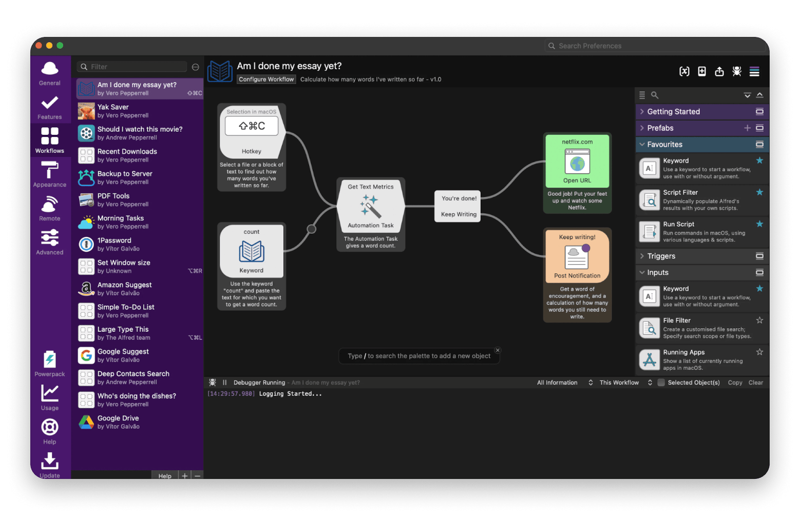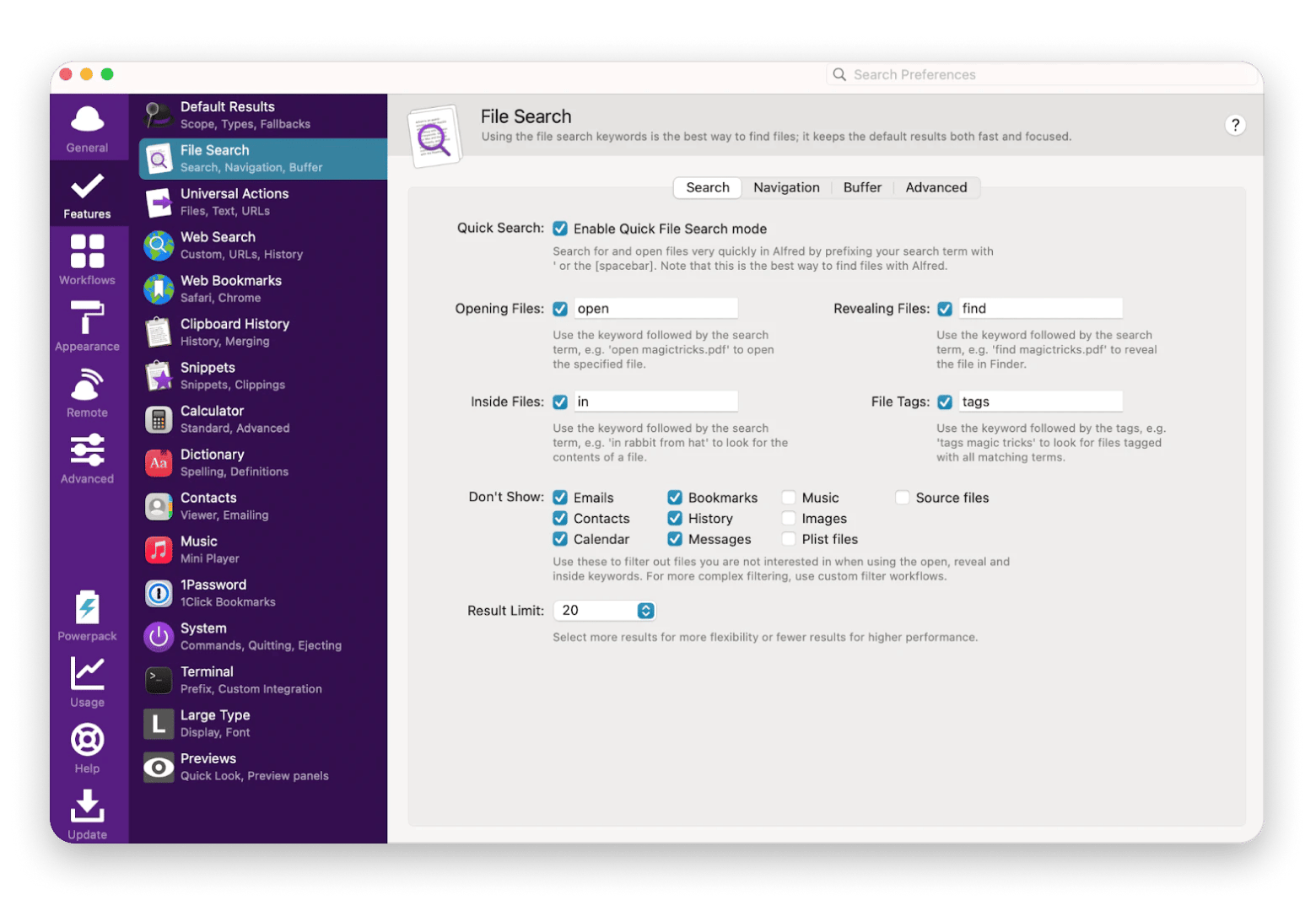 Note that most of the features require PowerPack, Alfred's paid plan.