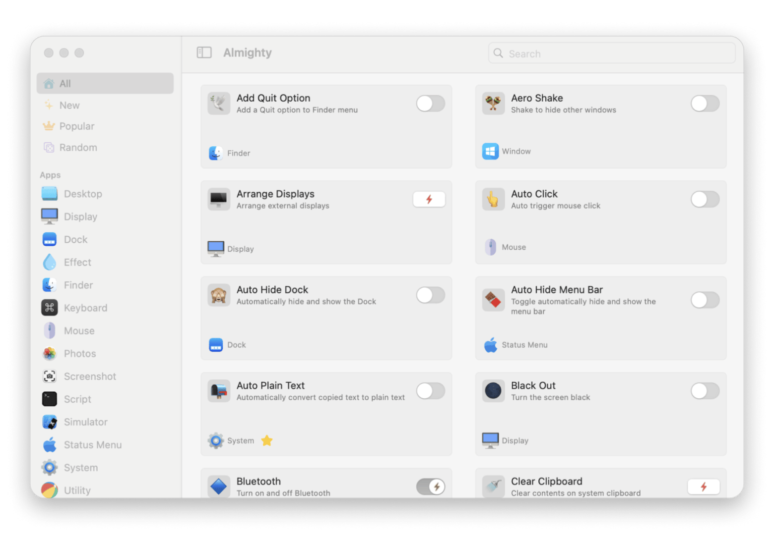 | Almighty | System-level controls and workflow customization | Mac | Included in Setapp from $9.99/mo | Membership + 250 apps |