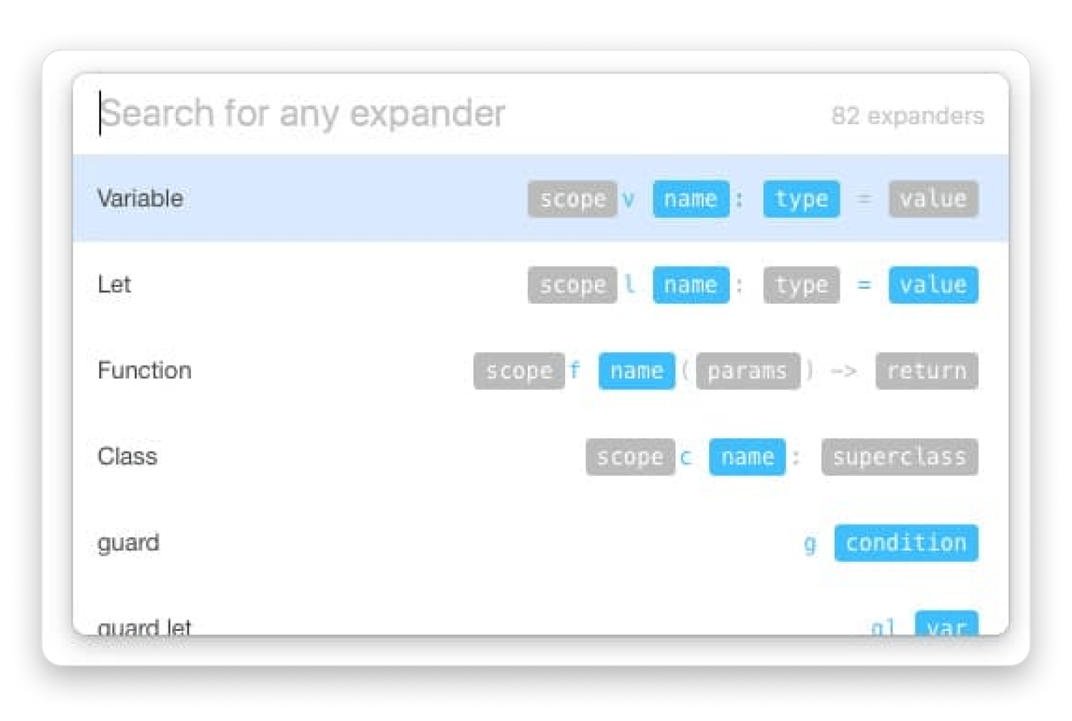 TeaCode does a similar job for code snippets, but it's smarter because it's specialized — it understands things like classes and variables, not just plain text replacement.