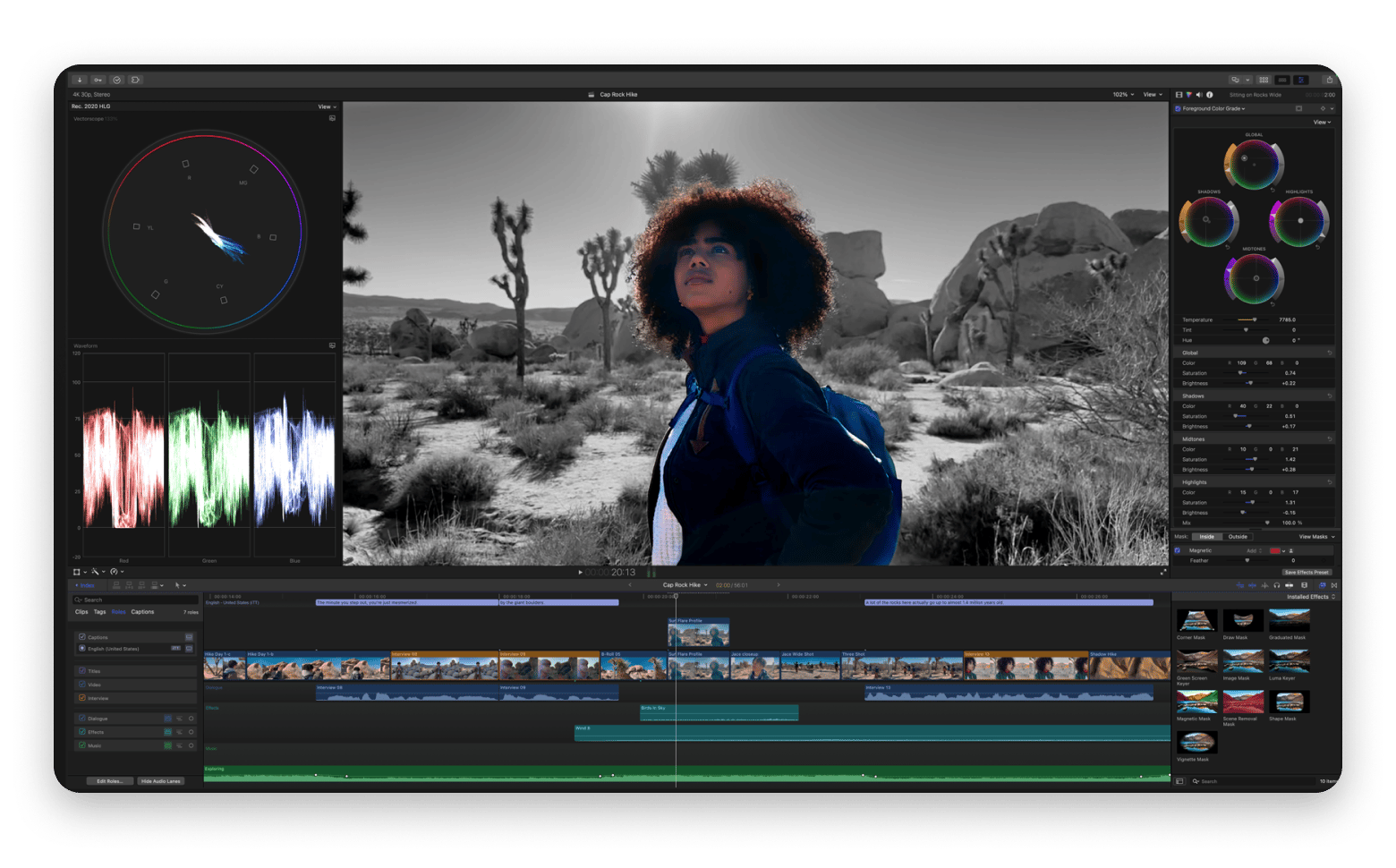 The software is packed with features like professional color correction & grading, multicam editing, and motion tracking. The newest Final Cut Pro 11.1 version has even more advanced features. My highlight is Magnetic Mask, which lets you isolate people and objects from the background and track their movement. There are also closed captions and support for stereoscopic video captured on Apple Vision Pro.