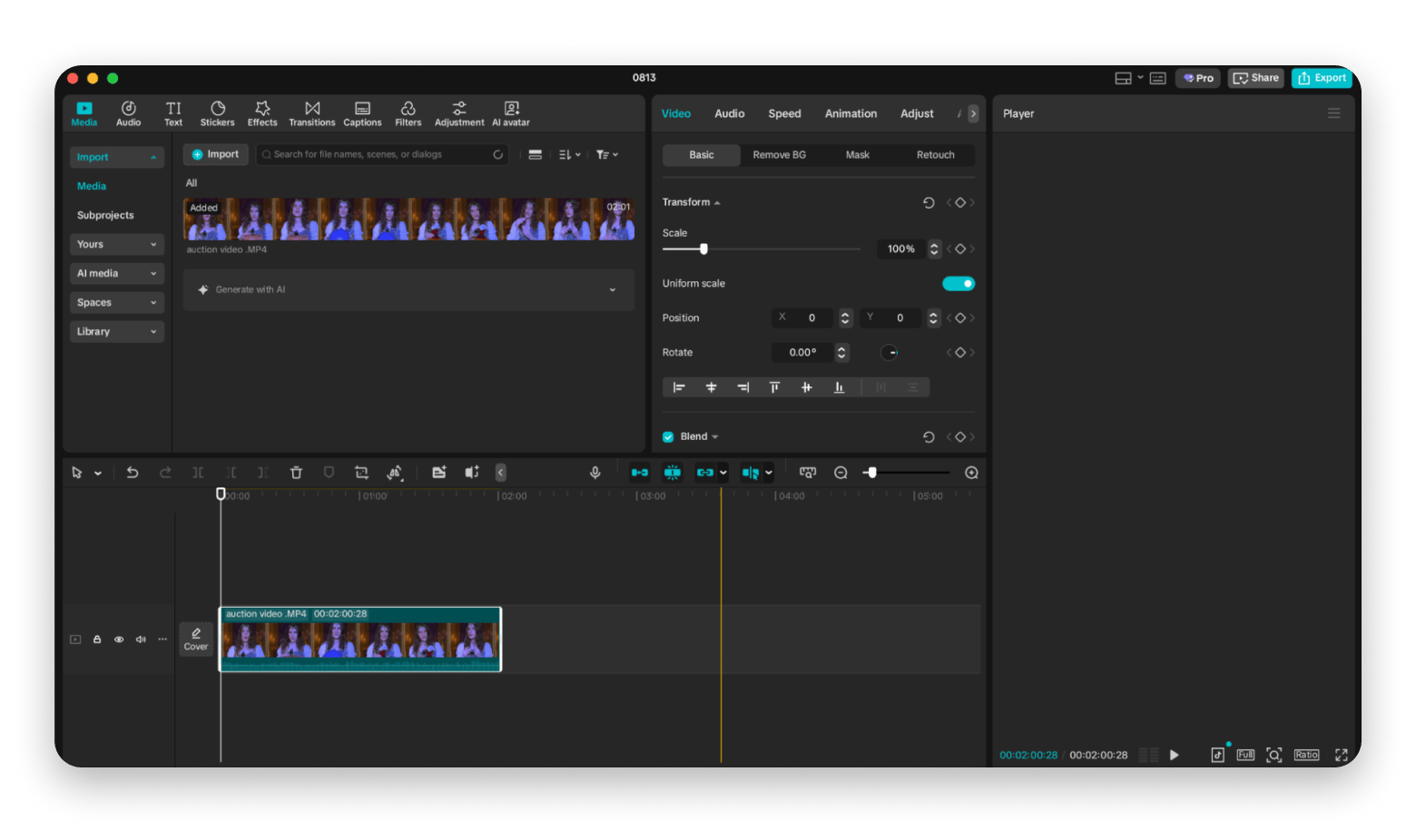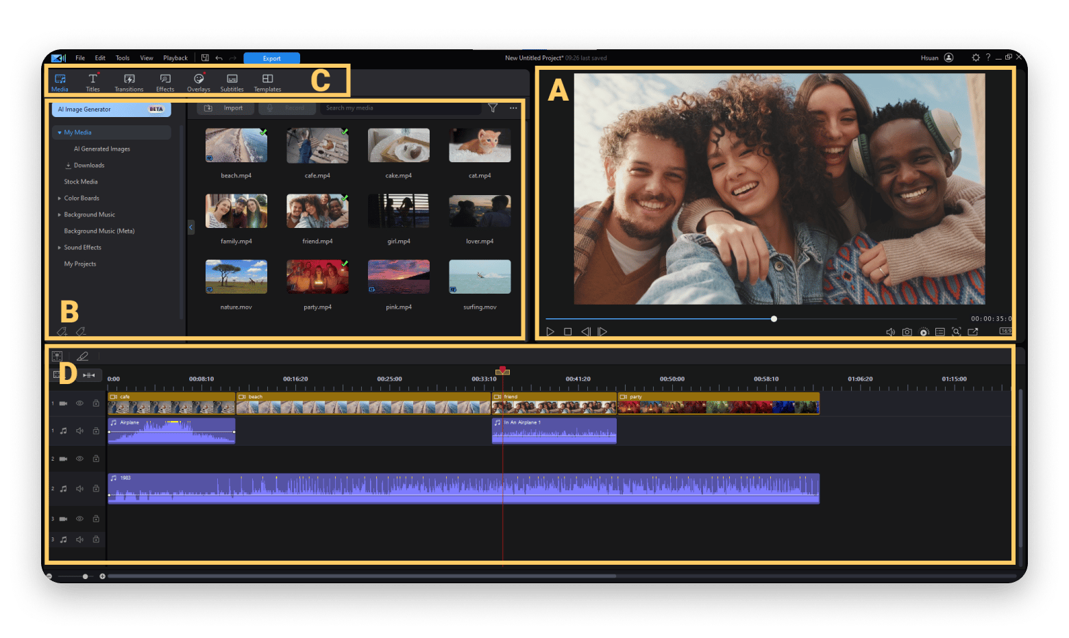 If you're a new video editor, you'll love the polished feel. The editor is great at creating fun content, and it also provides lots of effects you can apply quickly. Even better, the 2024 update now offers several AI features, including motion tracking, background removal, noise reduction, auto-subtitles, and upscaling.
