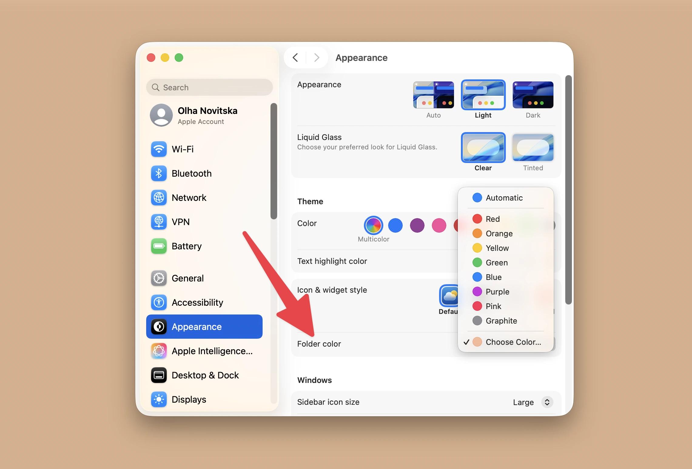 On macOS Tahoe 26, simply right-click a folder and choose Customize Folder to pick a color or icon. You can also set a default color system-wide in System Settings > Appearance. - Preview lets you create fully custom folder colors