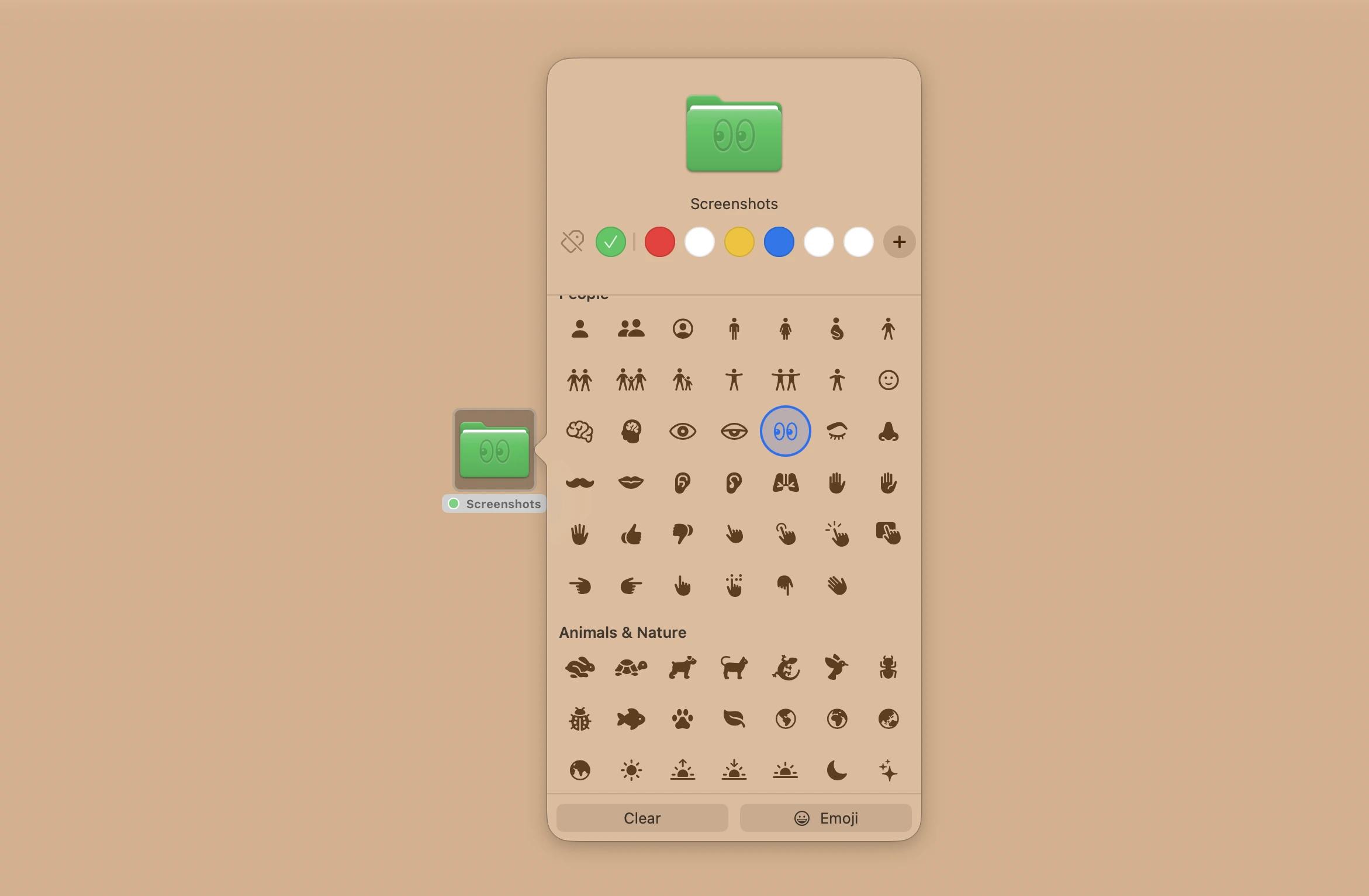 - Pick an icon or an emoji to add to a folder, if you wish to.