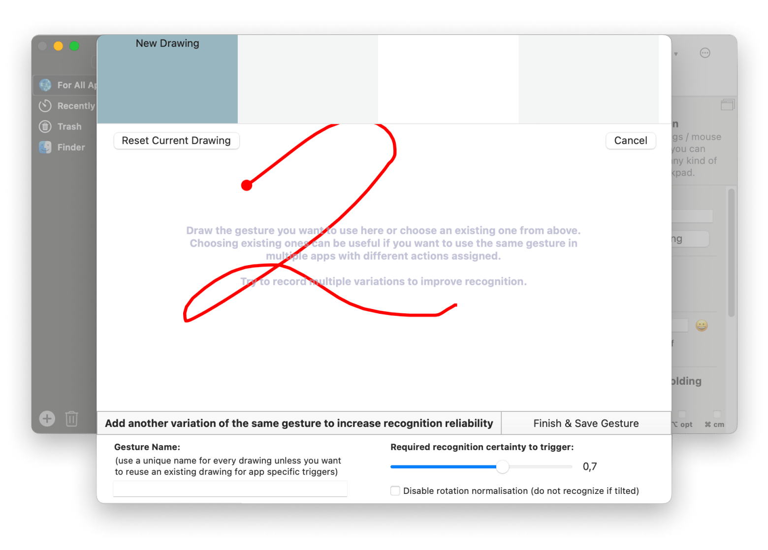 BetterTouchTool drawing gesture setup