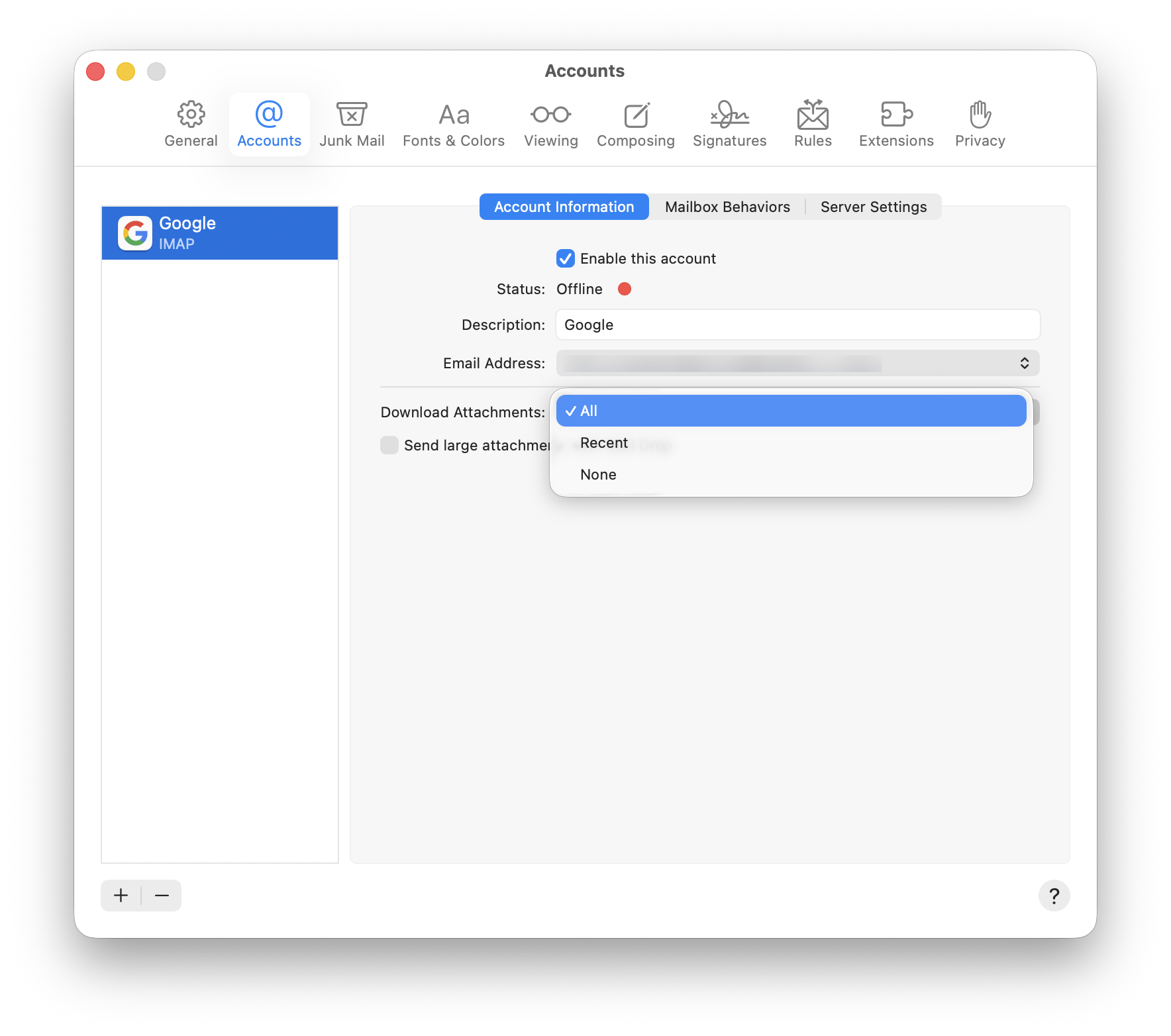 In the Mail app, you can control whether attachments are downloaded automatically, only when needed, or not at all. This is helpful if you’re trying to save space, especially on a Mac with limited storage. Or if you prefer having everything downloaded for offline access.