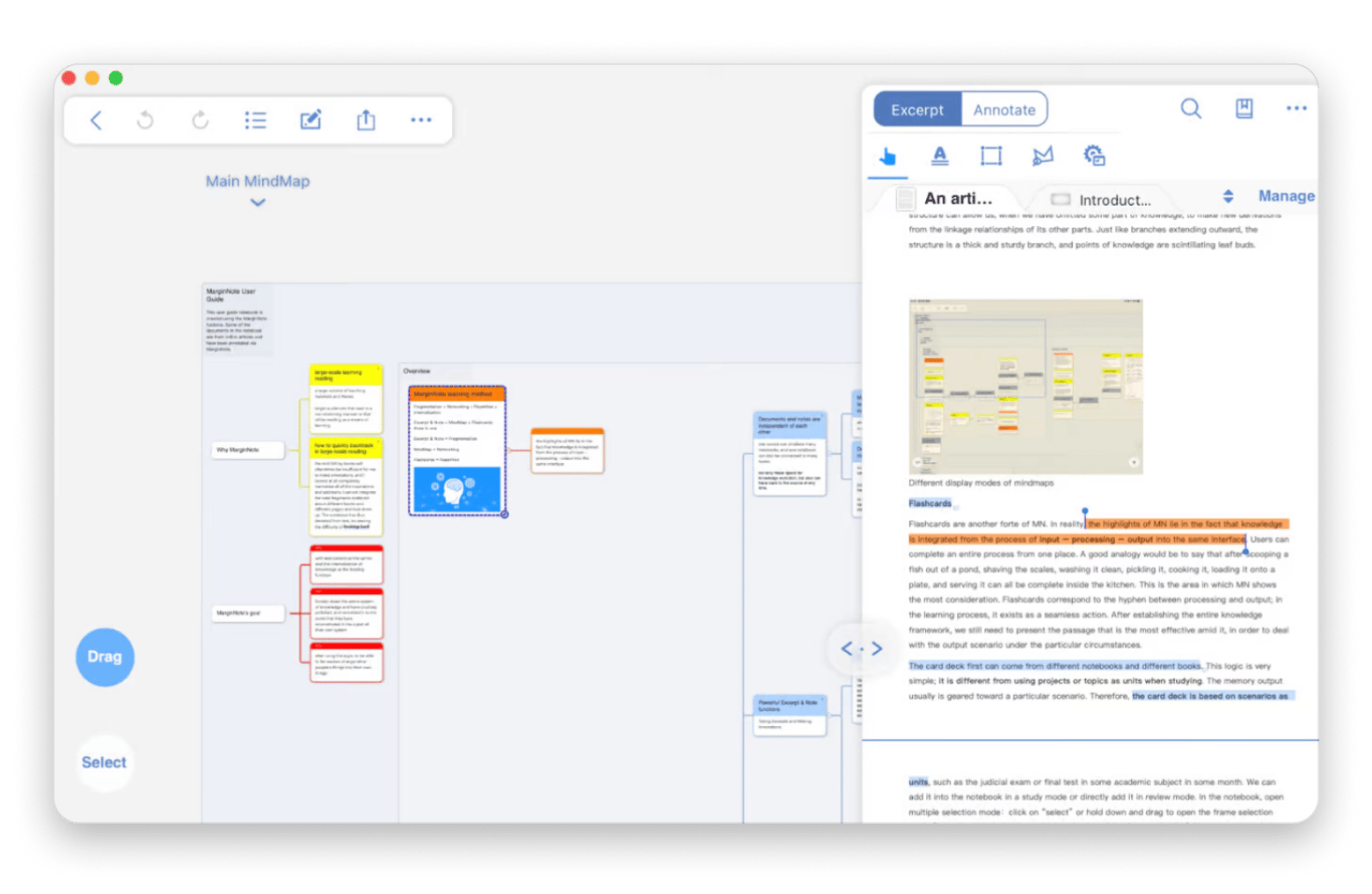 MarginNote is the most suitable Evernote alternative for students and researchers. It lets you annotate directly on PDFs, and you can easily convert your highlights into mind maps or build flashcards from your notes.